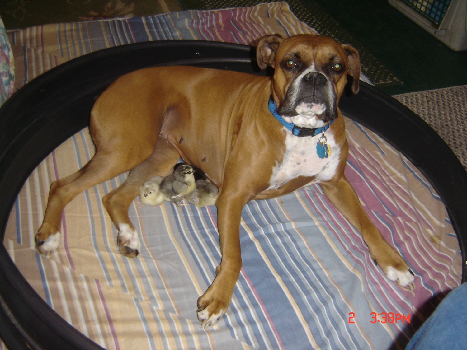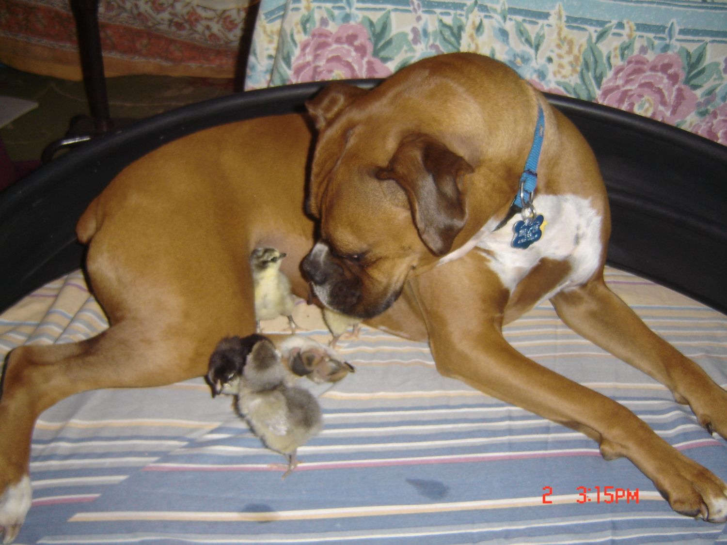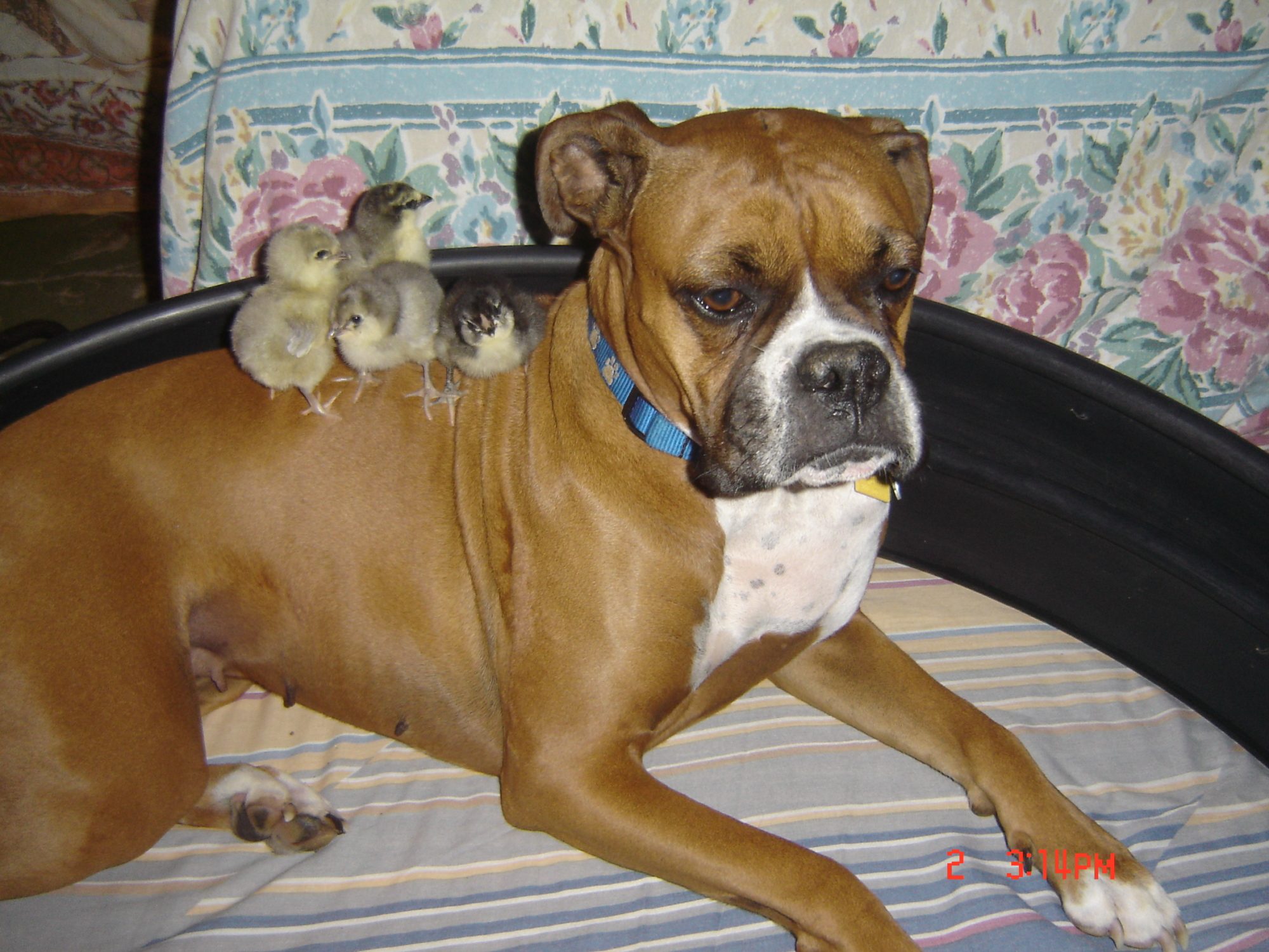 This is today. My beatiful Boxer girl, Summer, getting to know the new little bakery crew.