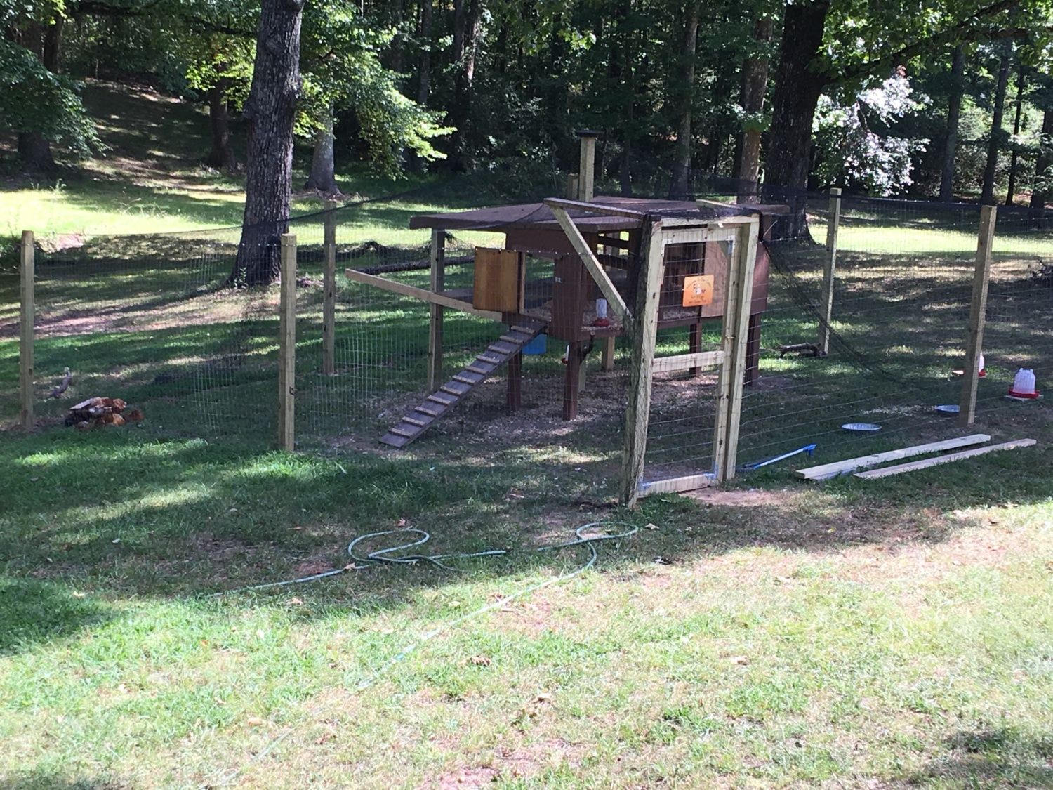 To fox proof it I spent 4 weeks preparing the run before the original hens arrived. I buried vertical flagstones along the sides of the run so it has 3 foot of solid concrete underneath. If foxy can bury deeper than that in 1 night respect to him. I then put coated wire 6 inches down the concrete on the outside of the concrete and nailed it to fence posts. I also lined the edges with heavy rocks but I think this may have been overkill. Cage wire is also over the top and I have trained blackberry brambles over the run so anything trying to climb over the run gets a lovely amount of thorns in their feet whilst the chickens get some lovely blackberries in the autumn and I get caught going to lock them up at night.