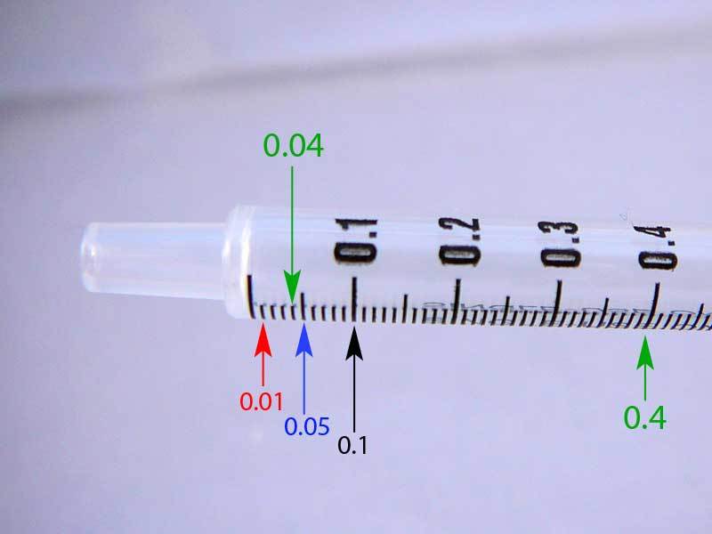 • 1/2 pound bird gets 0.04 ml