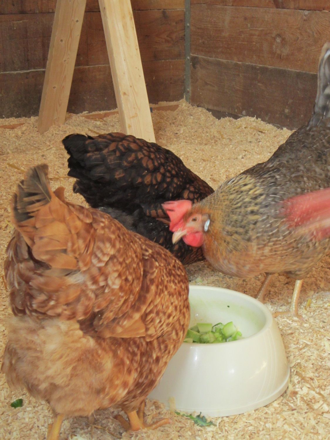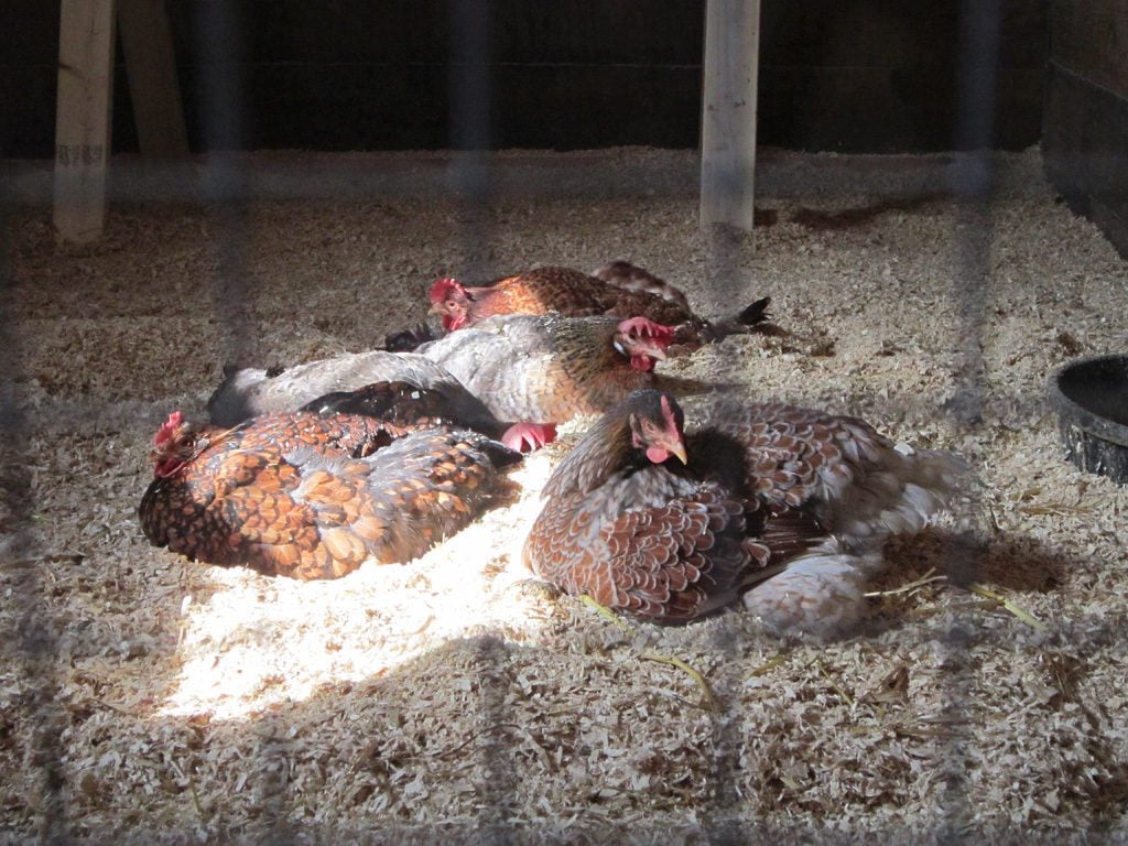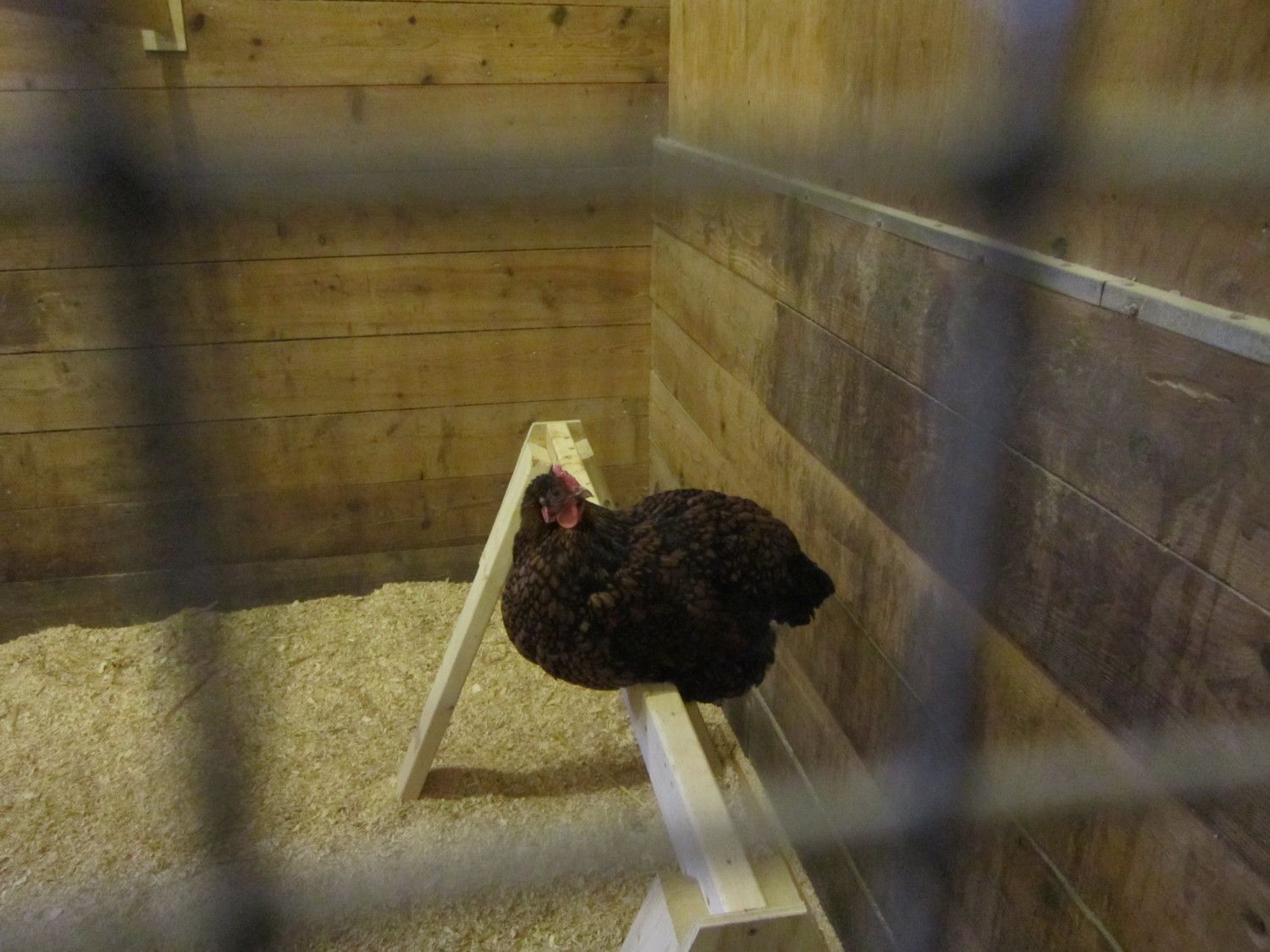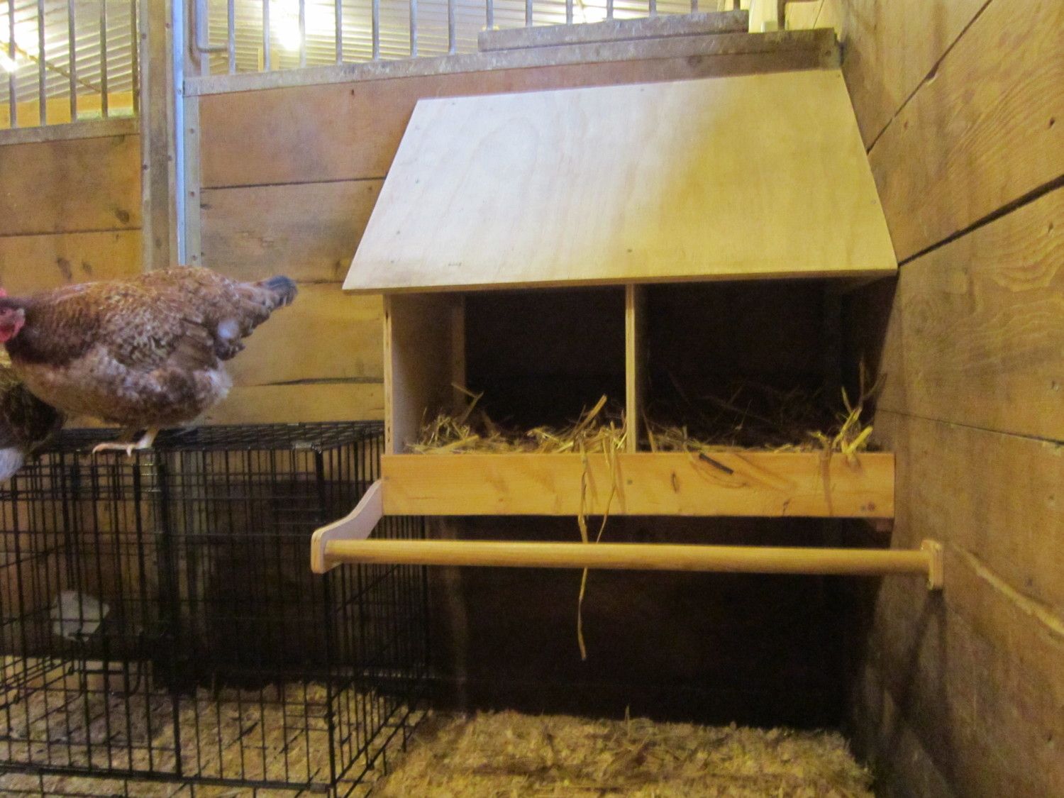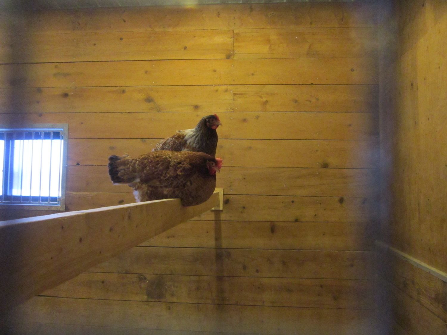 Here are some pics of my chickens housing. They have a south facing window so it is bright and there is good ventilation and a high ceiling in the barn so it's airy. They have a roost at 2 and a half feet and another at 5 feet where they sleep at night.