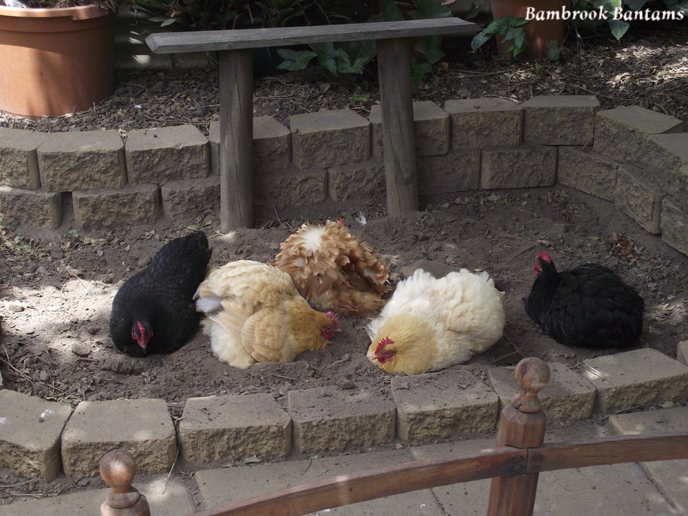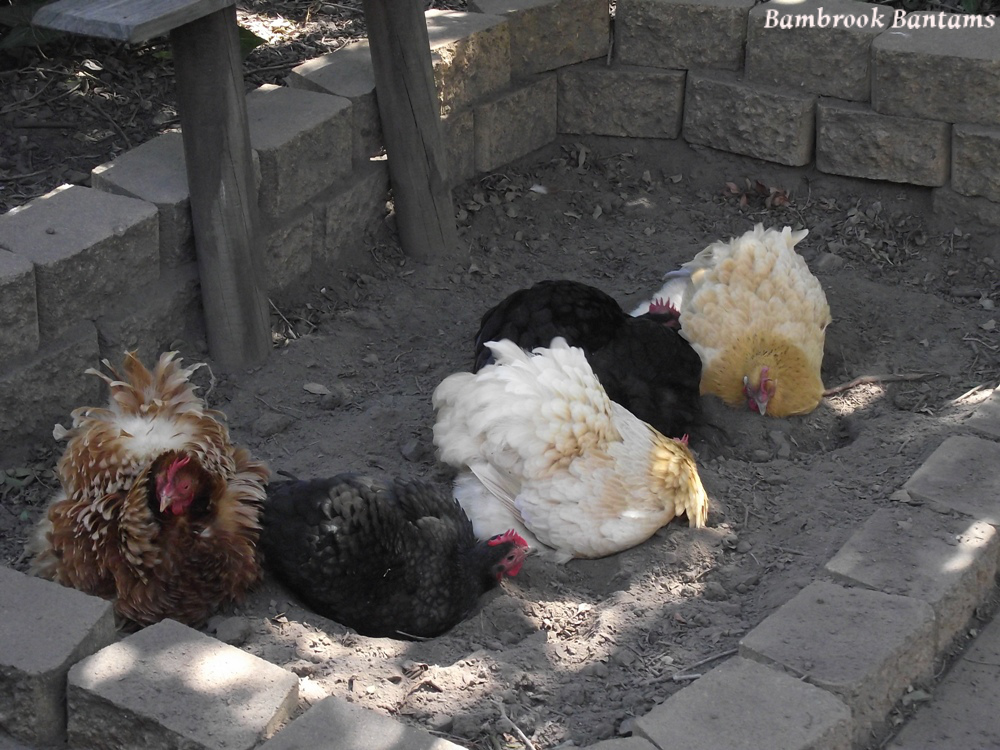 Penrod, the Buff Brahma roo preferred to dirt bathe with the girls.