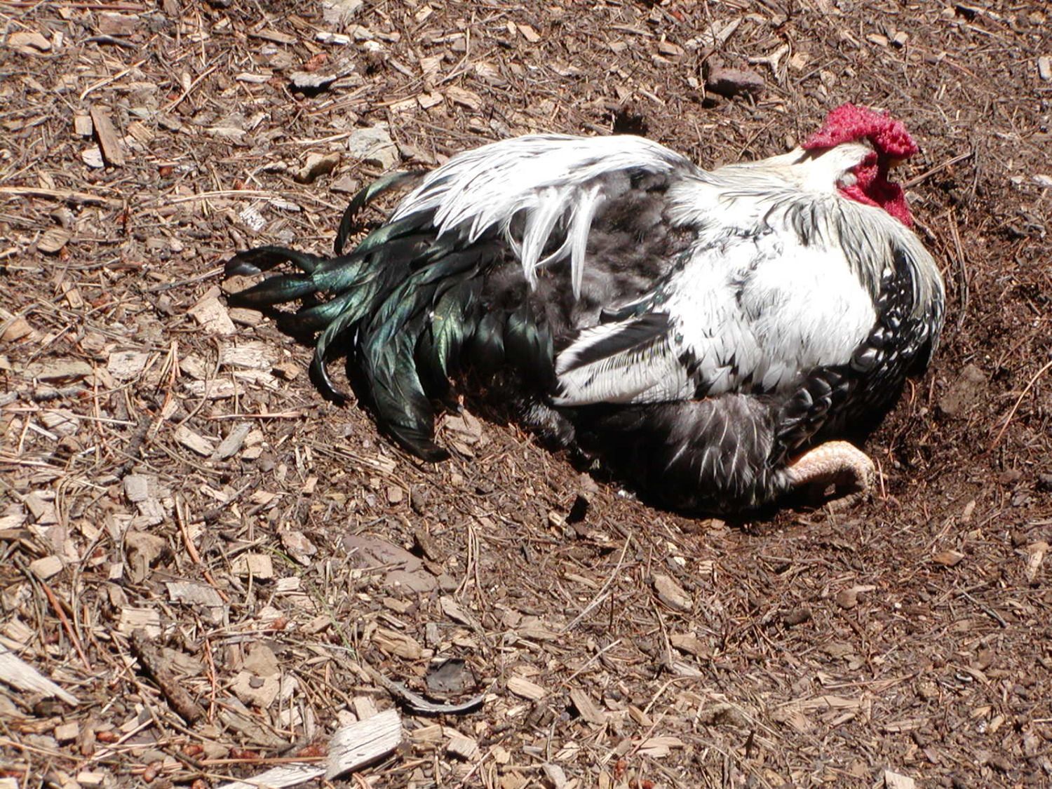 People often ask, do roosters dirt bathe, too? You bet they do! This is Stan, a SLW who loved to dirt bathe but preferred to indulge his guilty pleasure away from the rest of the flock.