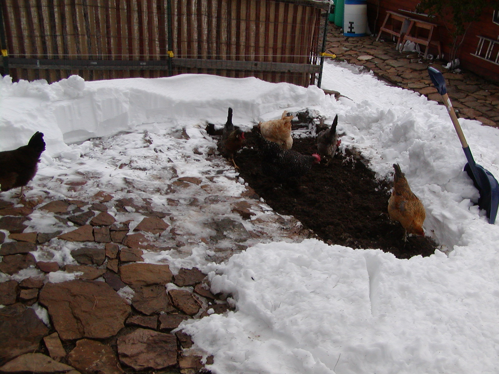 Therefore, I shovel the snow off so it will dry out faster so they don't miss any dirt bathing time. I believe that's in the contract they made me sign. Meanwhile, it's a good spot for worm hunting.