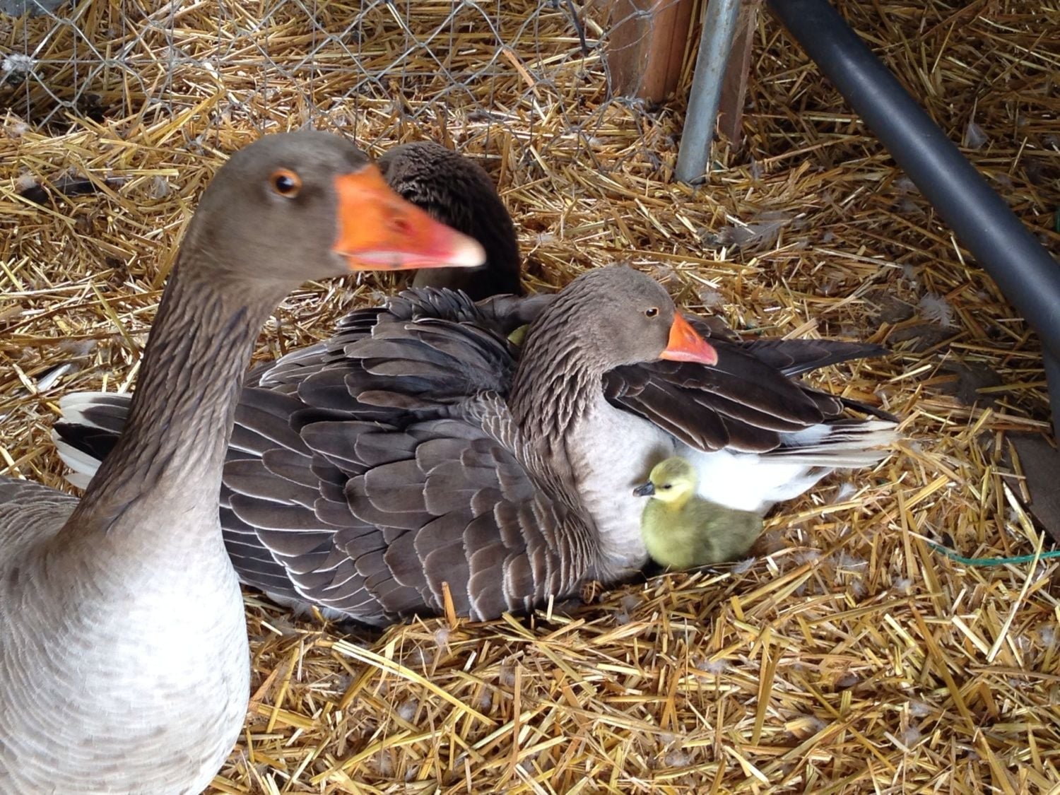 Aren´t they lovely...Nice that they managed to hatch out some, sharing a nest. I had 3 sharing a nest, silly geese, not one egg hatched out, not to my surprise...it was a right old' circus!Oh, so cute! My girls will not share a nest...