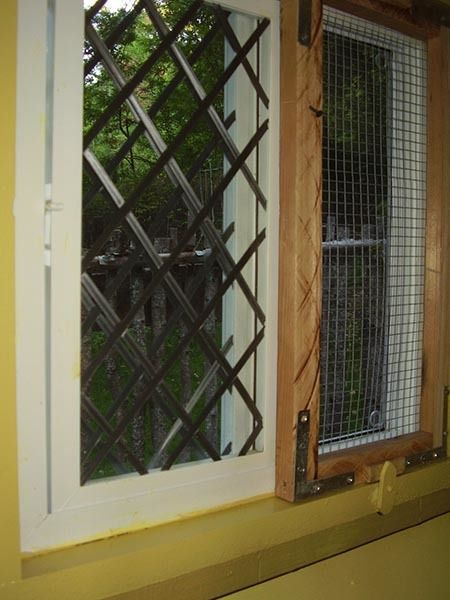 We leaded the sliding windows ourselves, and Adam made the special removable 'predator proof' screen to reinforce the normal window screen. He designed it himself and used all materials we already had...