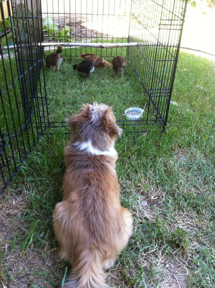 Now my other dog on the other hand...was hard to train. She is a Border Collie mixed with Blue Heeler. I took the same steps with her, but she doesn't have a desire to please her master like the other the one. So more repetitions it was. I would think, there she's got it, and she would start hearding the chicken. Or she would creep up to the chickens, the rooster would not like it and peck at her, and she'd snap at it. Anyway with time she finally got it and no birds were hurt in the process (almost). She's actually pretty good with defending them now, when she hears them squawking, it doesn't matter where she is, she will sprint across whatever to get to them.