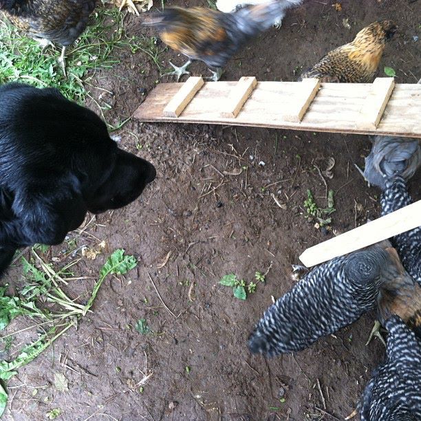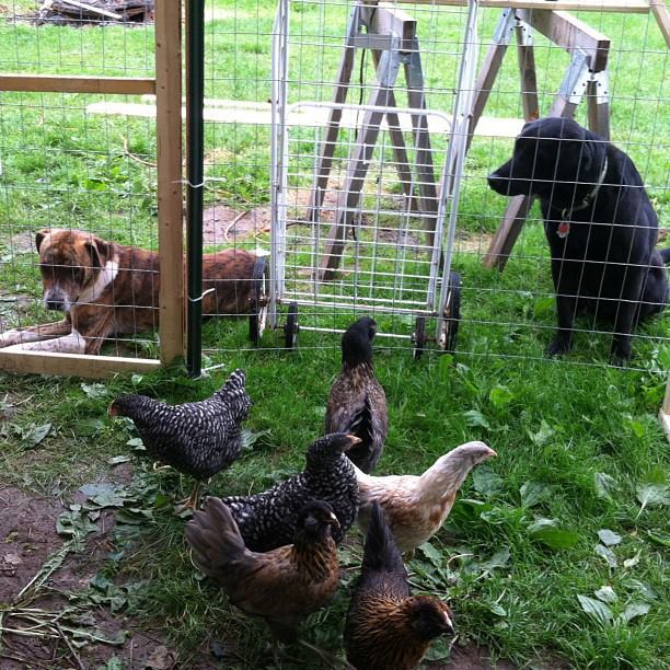 I trained my current German Shepherd Reynard and my late one Sturmz WHICH WAS PART WOLF!!! to not only be good to the chickens but to protect them.