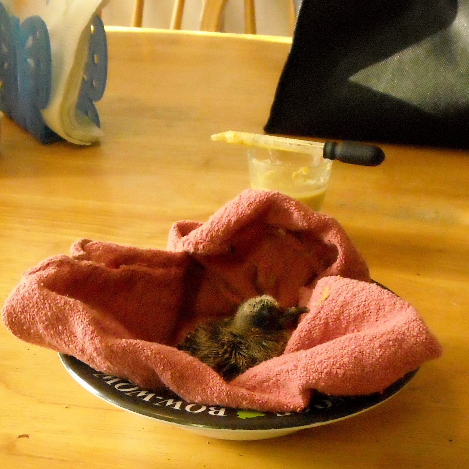 The picture was taken last Thursday when it came to me before I figured out the feeding thing. There are more feathers now and finally an alert, intelligent look in it's eyes.