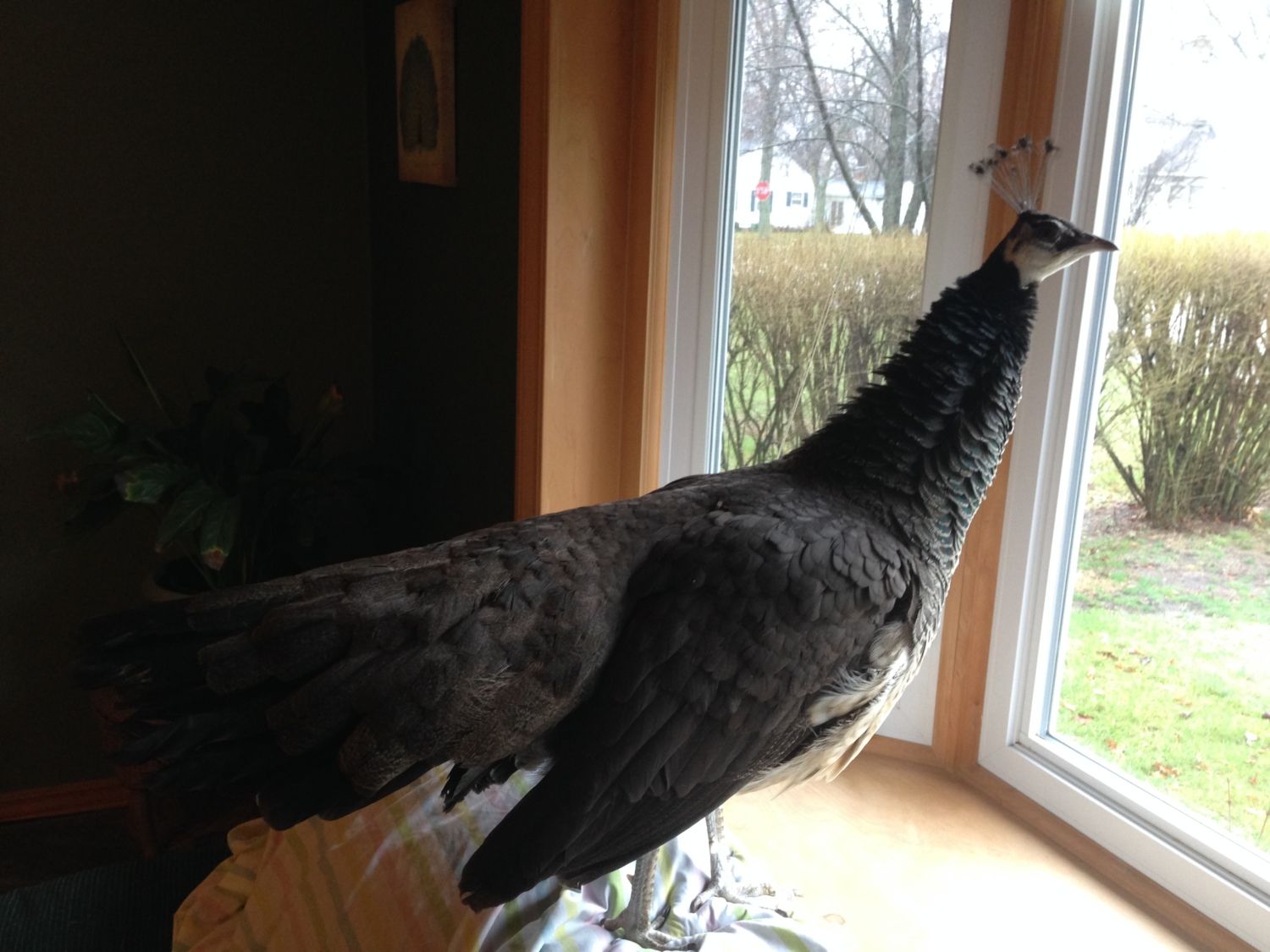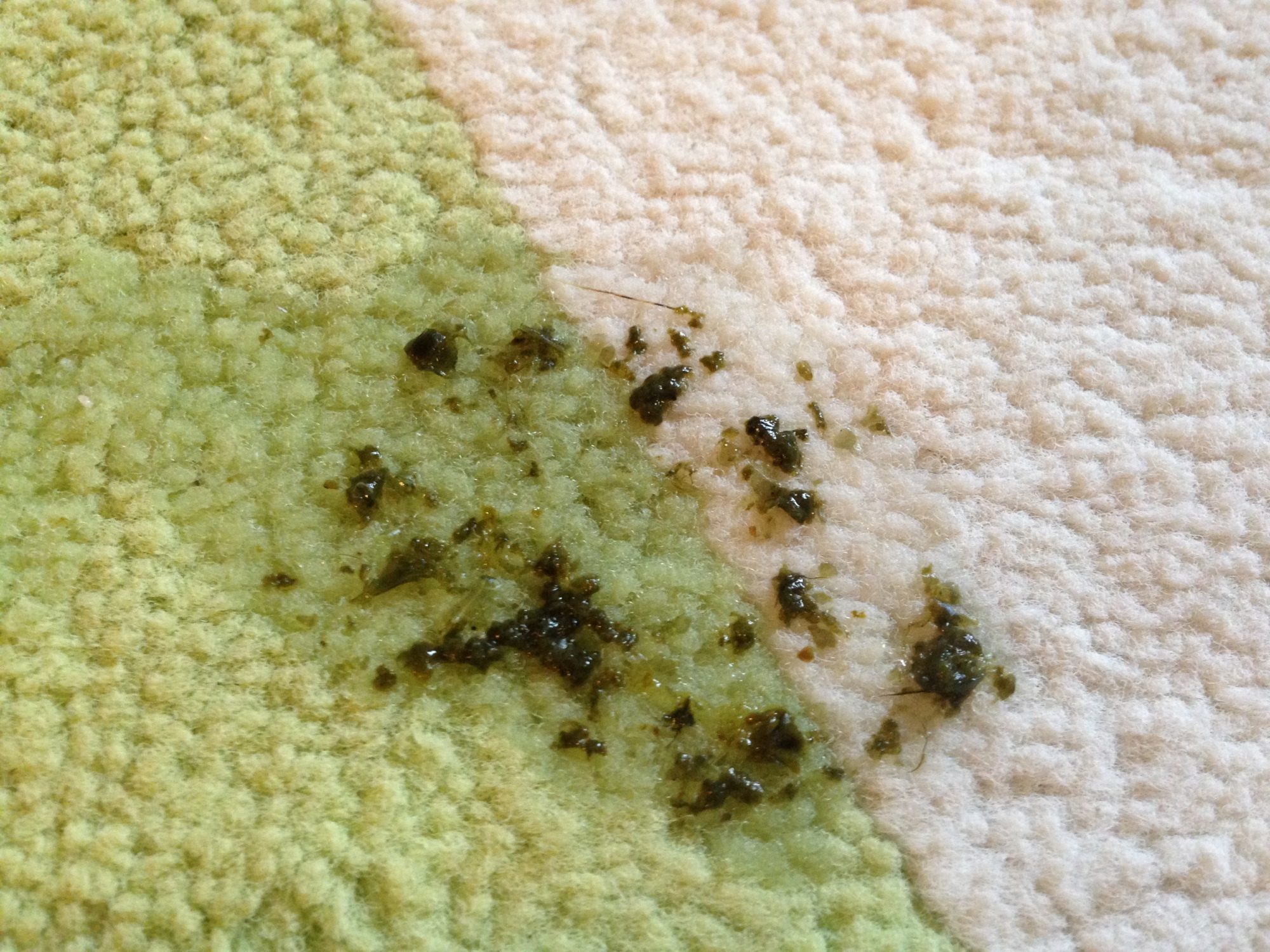 I have a two and a half year old peahen, Paisley, who lives indoors. Several weeks ago, I noticed that her poo was unusually stinky. I didn't think much of it until a couple weeks ago as every poo was very watery. Her eating/drinking and activity level were normal up until last week. I also noticed that she was eating more than she was pooping, i.e. more was going in than was coming out. Paisley had a fungal infection a few months ago and had displayed similar behavior as she is now, so I started the same treatment plan that had healed her last time; oil of oregano w/ olive oil and concentrated garlic liquid with a little greek yogurt, very small amounts injected orally 4-5 times a day. When she had the fungal infection, this method seemed to do the trick. This time around it has not been as effective. During all of this, I had attempted to start her routine deworming and was using Levasole (which I hadn't used in the past). Her poops kept getting more and more watery so I stopped that after a couple days. That's when I started the natural remedies. Up until this week, we noticed that her food wasn't digesting properly, as we would see pieces of greens and seeds pass through. I assumed this was the result of a sour crop, however, her crop doesn't seem any different than normal. She feels like she's a bit on the skinny side but other than that, nothing feels abnormal. Like she did toward the end of her fungal infection, she's been holding her tail up higher than normal, like something's bothering her vent, but upon inspection, all seems to be fine. She has been drinking excessively and today has only wanted to eat wax worms. After she ate a bunch of wax worms, she started milling around kind of picking at her but not really eating anything. Her poos today have been almost all watery liquid with no substance until she ate the wax worms (which perked her up quite a bit). I have attached some poo pics and a pic of her stance. The poo pic on the carpet was mostly water but had more too it than this morning. Shortly after that, she had two very stinky cecal poos. Kinda strange as far as timing as normally her cecal poos are like clockwork, 8-9am and 5-6pm. I started her back on Fenbendezole today in her water and haven't given her any of the oregano/garlic concoction since this morning.