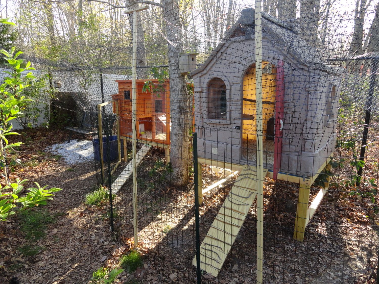 The two coops are for the 6. The Trixie can only hold two of them full grown. The playhouse may be able to hold all of them. I had already ordered the Trixie before I found this wonderful site. This site gave me the idea of turning the unused playhouse into a coop. So, I did. A few days later, the Trixie came.