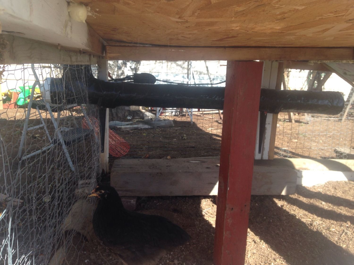 Well in the mean time we got a new flock of chicks that are now 9 weeks old. We went and got Betty Boop and upon introducing her to the new flock she has become quite aggressive. She was keeping the babies from the food and water so we set up another waterer and feeder on the opposite end of the run with a blind in front of it so that Betty can't see them unless she goes over there. She is also chasing them out if the coop after they have roosted for bed at night. The coop is not big enough to separate them and I don't have another coop to put Betty in.