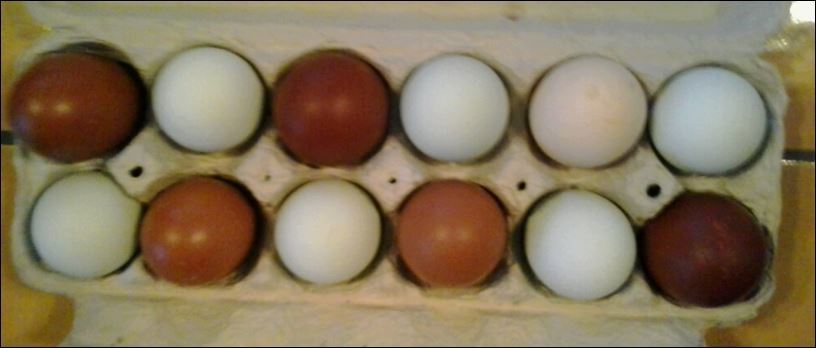 Hey, all. Sorry for the delay. Here are some egg pics. I didn't adjust the color at all ... have an EE egg (second from right at the top), Whiting eggs and some Maran eggs in this "basket". I don't know if the blue is showing up, but they are definitely blue!