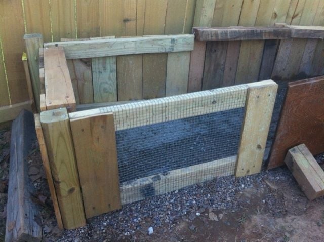 I got the pallets and pallet box from my local KSI (kitchen and bath installation company) they had a bunch of different sized boxes and probably 200 pallets free for the taking. (I find the softwood pallets are a lot easier to work with, and if you get the longer planked pallets you can just cut off the 2x4s on the ends, making them MUCH easier to take apart and the planks are still long enough for what you need.)