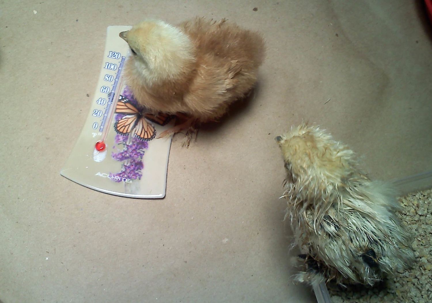 However, I couldn't resist buying one that was tinier than all the rest and very dirt. It's poor feather/fluff is all mated and stuck together.