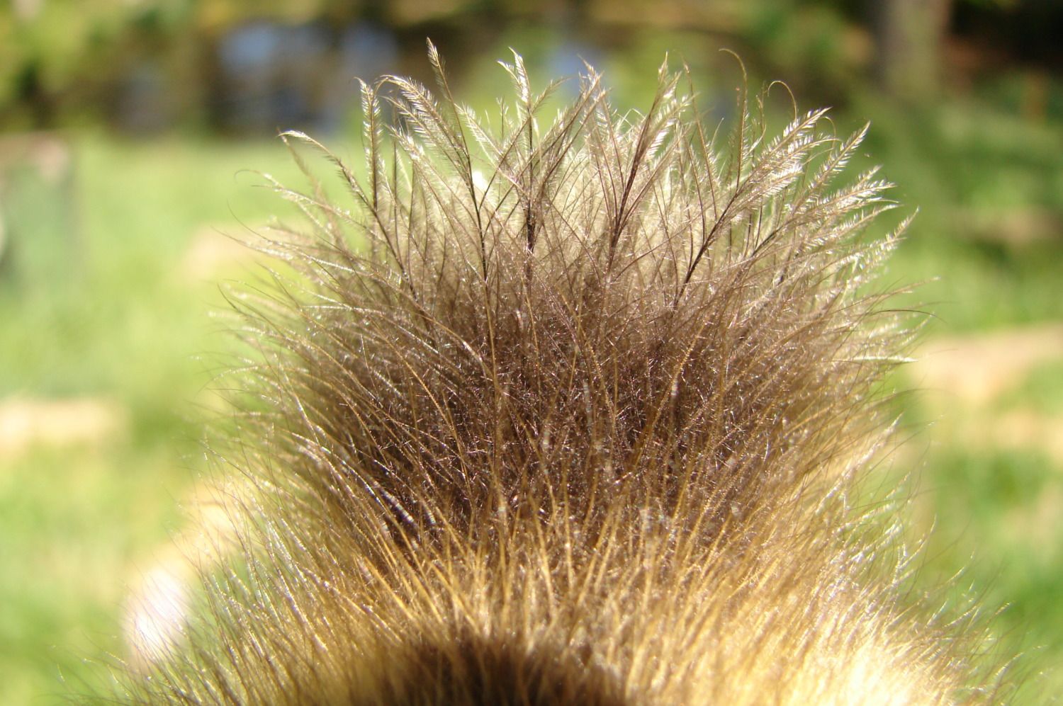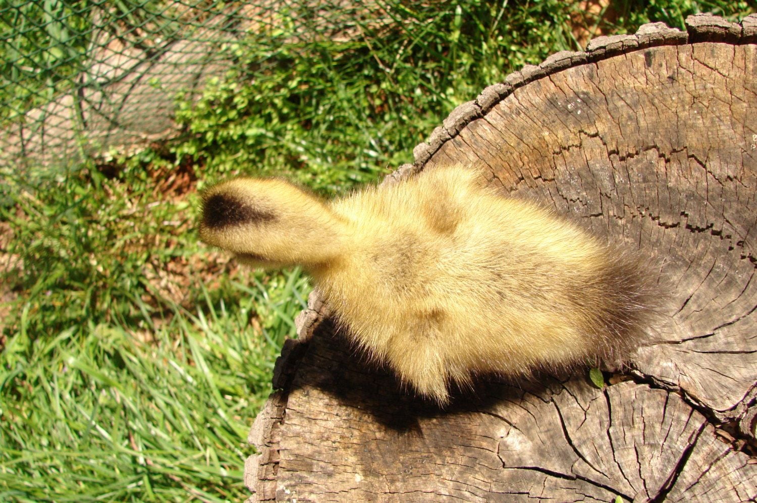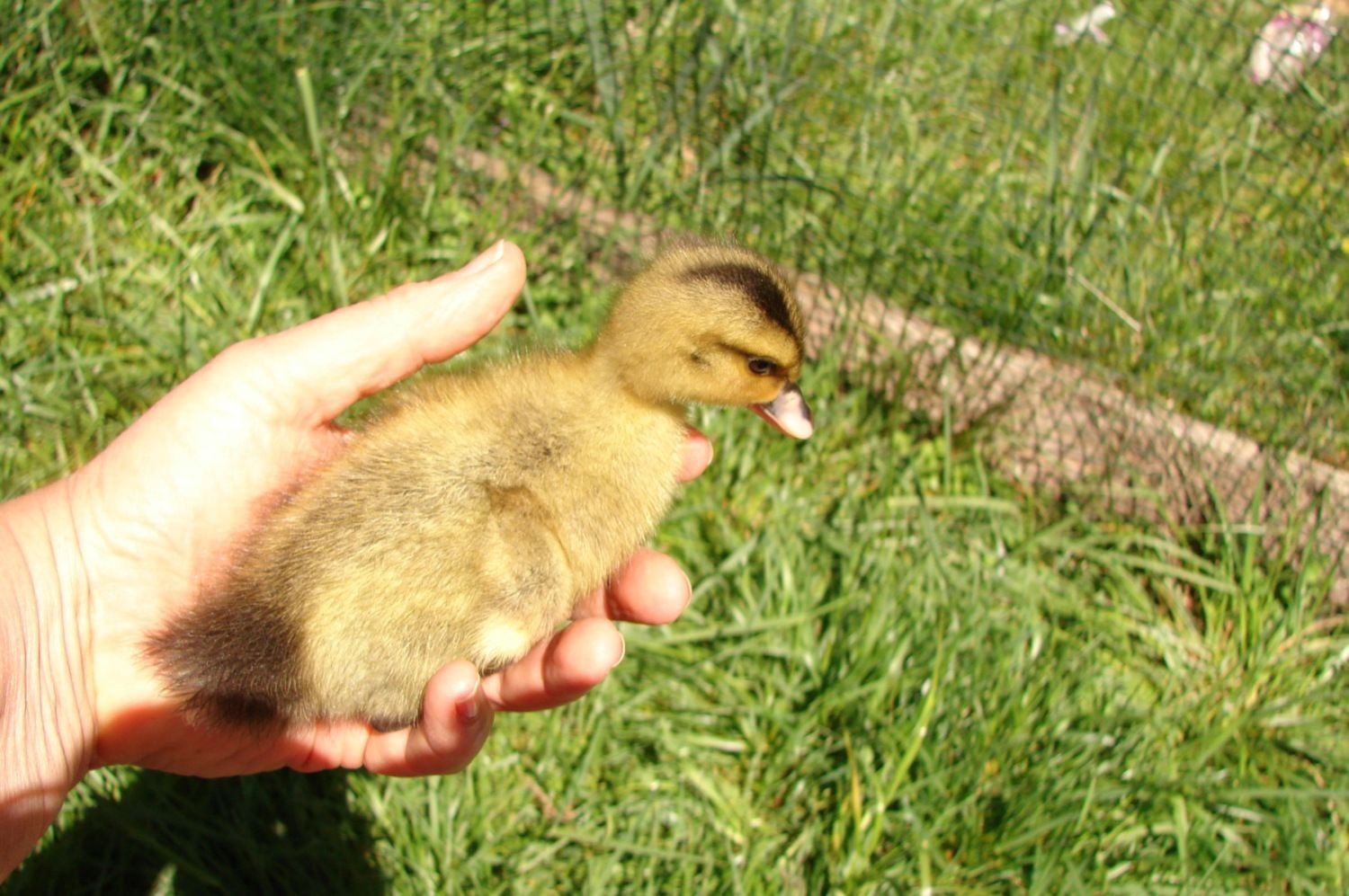 [/COLOR] Duckling # 2 from the same batch is similar but darker. The head marking is wider than a typical appleyard but there is a black head marking and a black tail. The back is a brownish yellow. Again, the bottom of each featherlet is quite black. This duckling has black feet and a black upper bill, with a pink lower bill. It has no white on the wings. [COLOR=B42000]