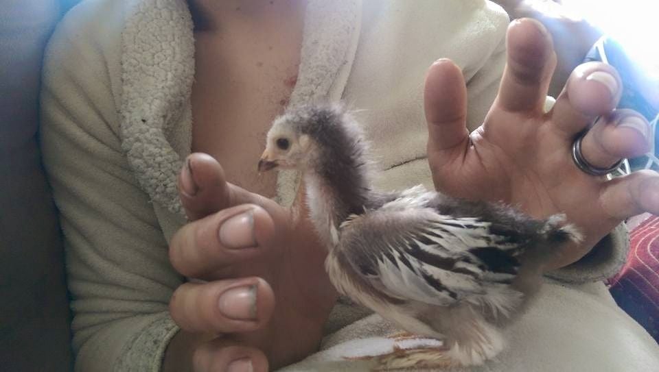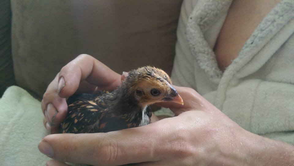 Chick 2, I am thinking a golden seabright. Any guesses on gender? No comb at all yet.