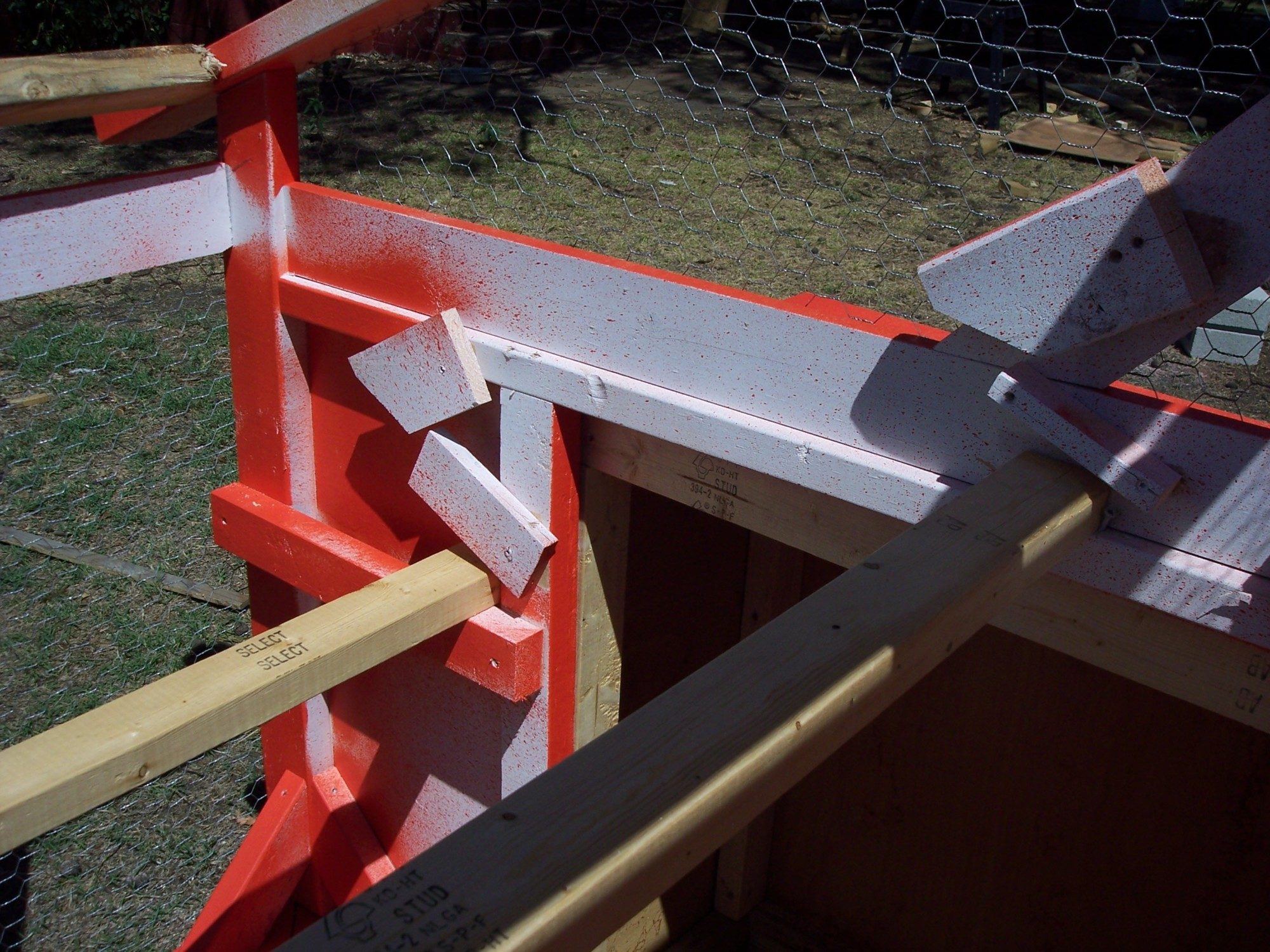 Phew, how am I? HOT! I am done working outside for the day. But the new coop is nearly done, all that's left is the roof and to figure out how we are going to do outside access for the nest boxes, the feed/water system, and a little bit of hardware. We bought a can of Oops paint at Lowe's for $5 and it turned out to be OSU orange! Haha that's Lonny's alma mater so he was happy.