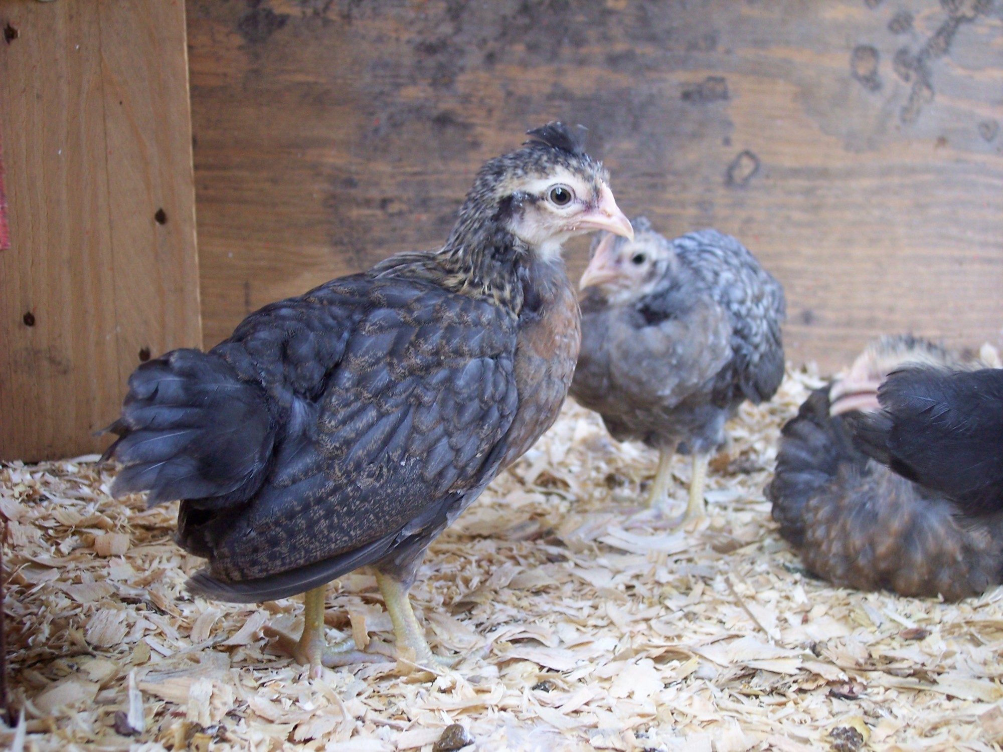And one of our four week old crested cream legbars, I call her Fancy since she was the first to get a crest!