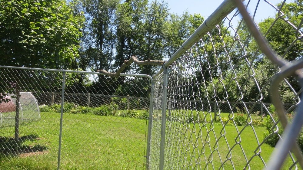 They generally sleep on top of that chain link fence at night, which can't be all that great for their feet. DH thought they would be more comfortable on the branch, but he didn't put it in their usual place, so I don't think they are going to use it. They did, of course, go on it while he was trying to attach it to the fence.