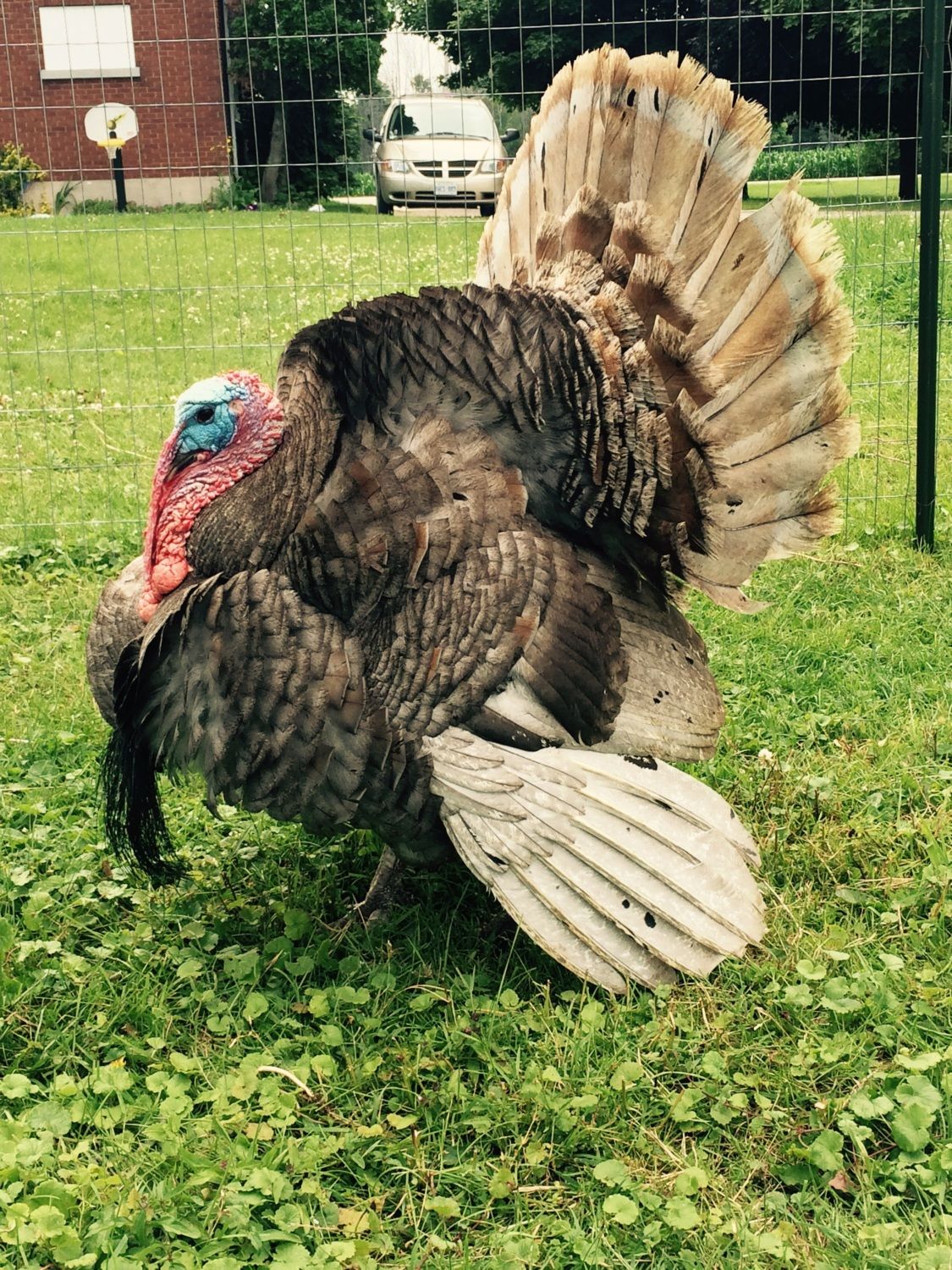 We have a 3 or 4 year old slate turkey tom. He is a great pet and pastures with all of our goats, chickens and ducks. He has been losing his feathers like crazy lately. The rosters has been bullying him in the coop a little so he sleeps with the goats now. He is eating fine still struts and gobbles but we've only had him since may so I've never seen him moult and I'm not sure when it's supposed to happen for turkeys. His feathers aren't plucked either, the quills are still intact. We live in Ontario and it's mid August.