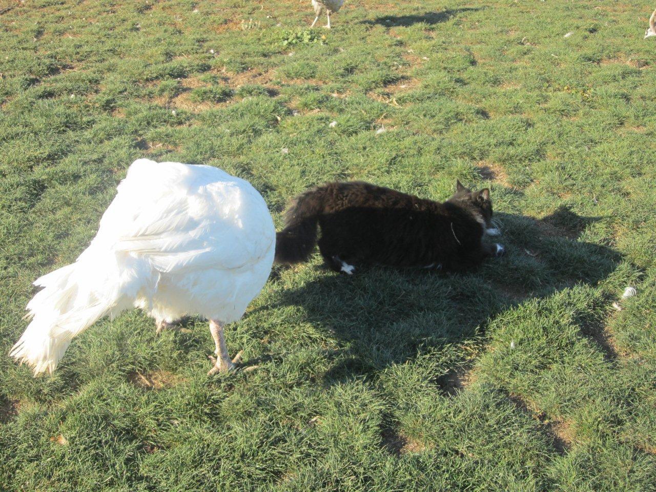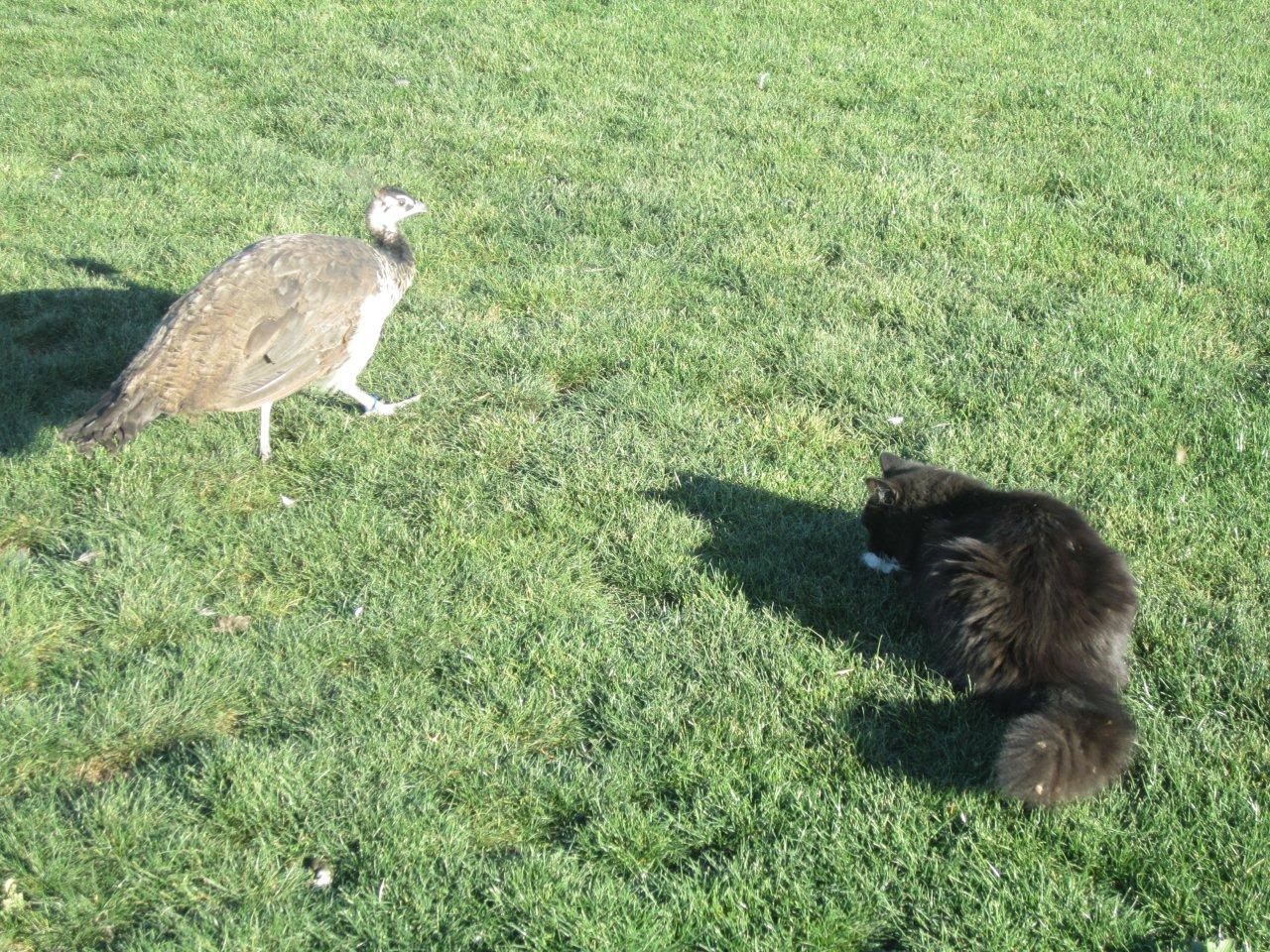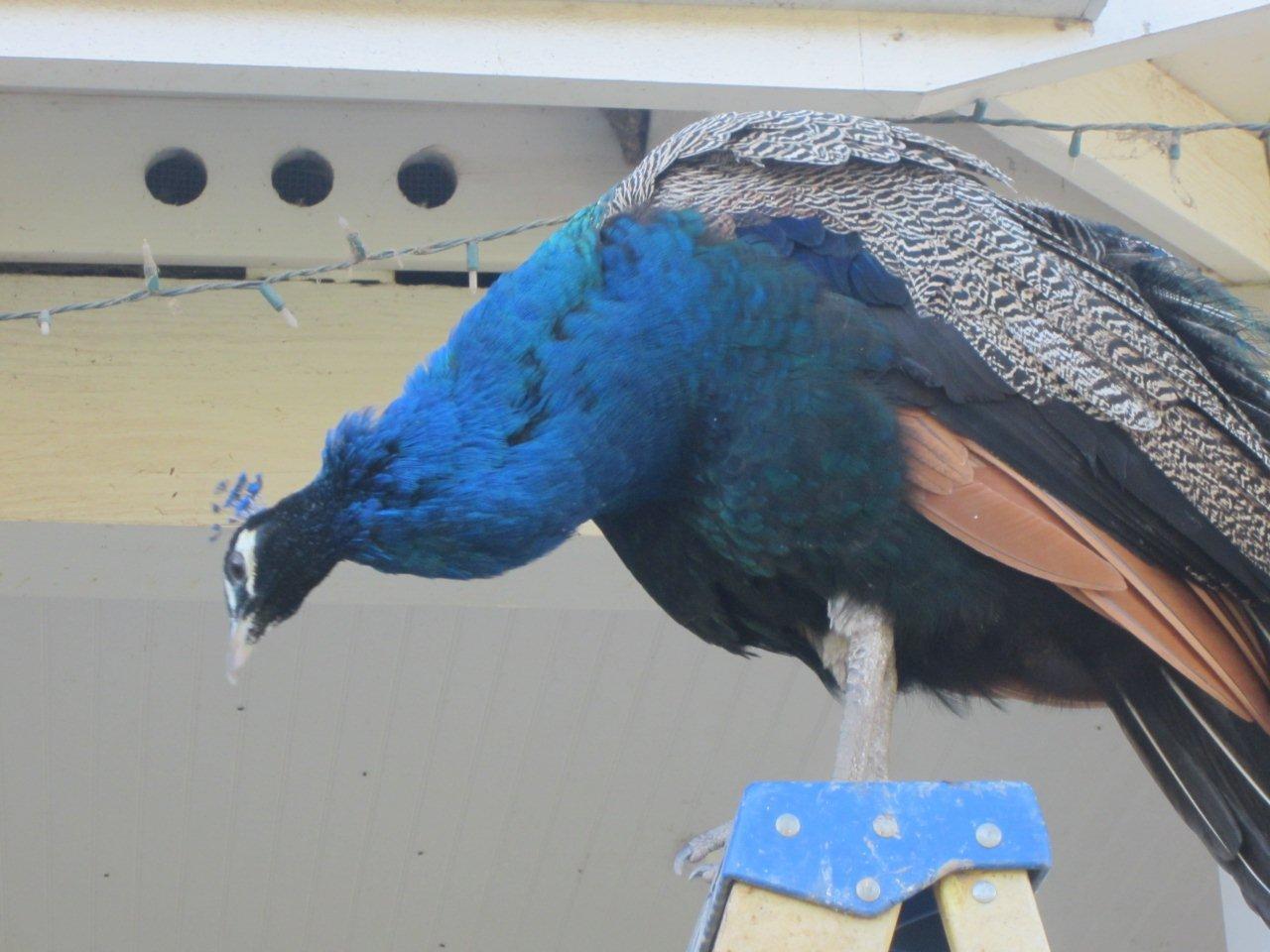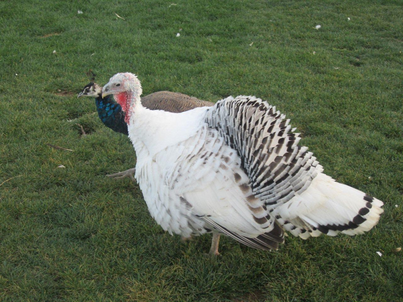 She hatched him and raised him. Probably the best broody hen on the property.Amazing pictures Kathy. Did the peahen raise the turkey?