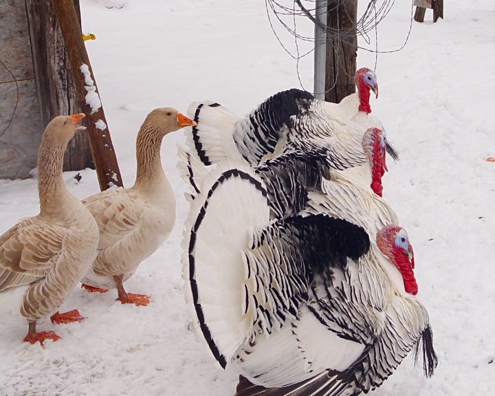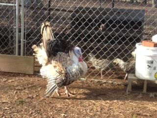 Got some really cute turkeys there (cute as turkeys go anyway). I don't fight my birds they sleep with us and eat with the dogs. My little hen has actually started showing signs of separation anxiety when I leave for any length of time.