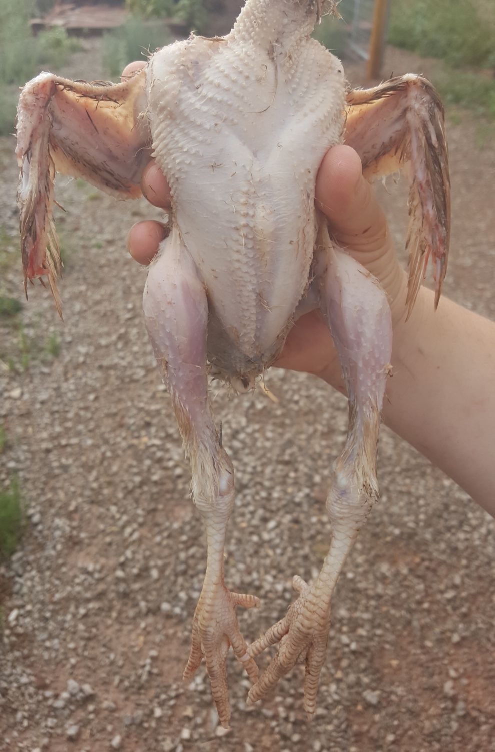 We have a batch of heritage turkeys right now that are about 5-6 weeks old and have been raised in a brooder with chicks and guinea fowl and are now free ranging during the day. We noticed that two of the bourbon reds began showing deformity of the legs ~2wks ago and we culled them today as they were no longer leaving the brooder to free-range with the others, and they looked really sad