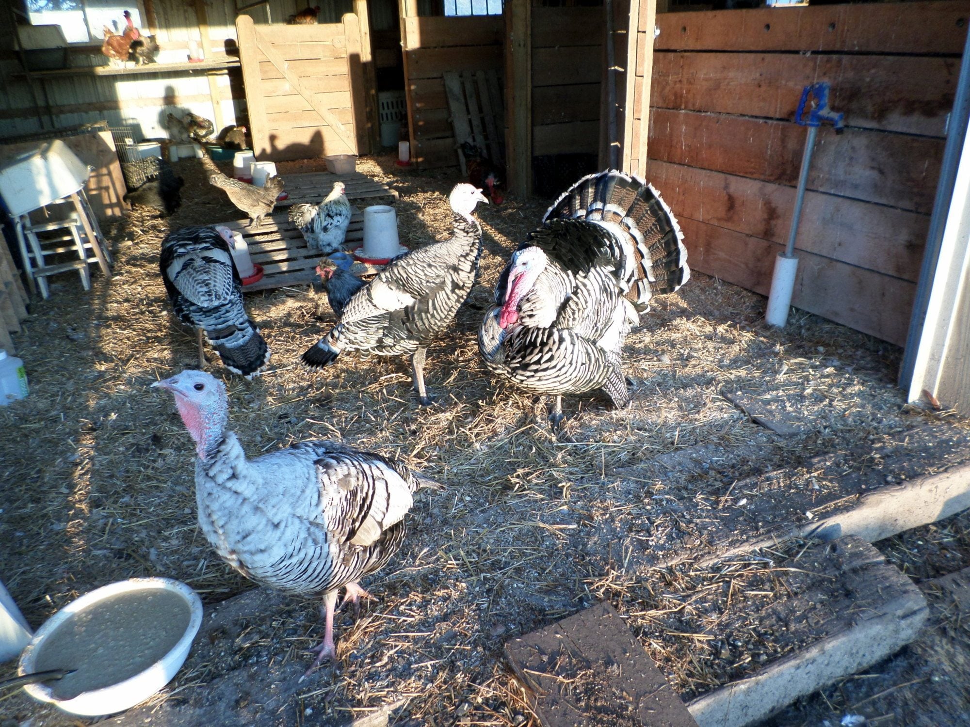 Your "main man" is beautiful! I love the pic you got of your hen crammed in the small crate! LOL! Thanks for sharing your pictures!Hello all, It has been forever since I have been on here. Crazy how work gets in the way of the fun stuff all the time!Thought I would post some pics of my guys and gals all grown up. It has been a year now since I got them and the hens had hatched out some babies who are no longer babies. I believe I have 2 Jakes that will eventually need a new home. There has been no fighting yet but lots of strutting around each other. Oh and I have a broody hen right now. Do they normally go broody at this time of year? She was broody at the beginning of the season.