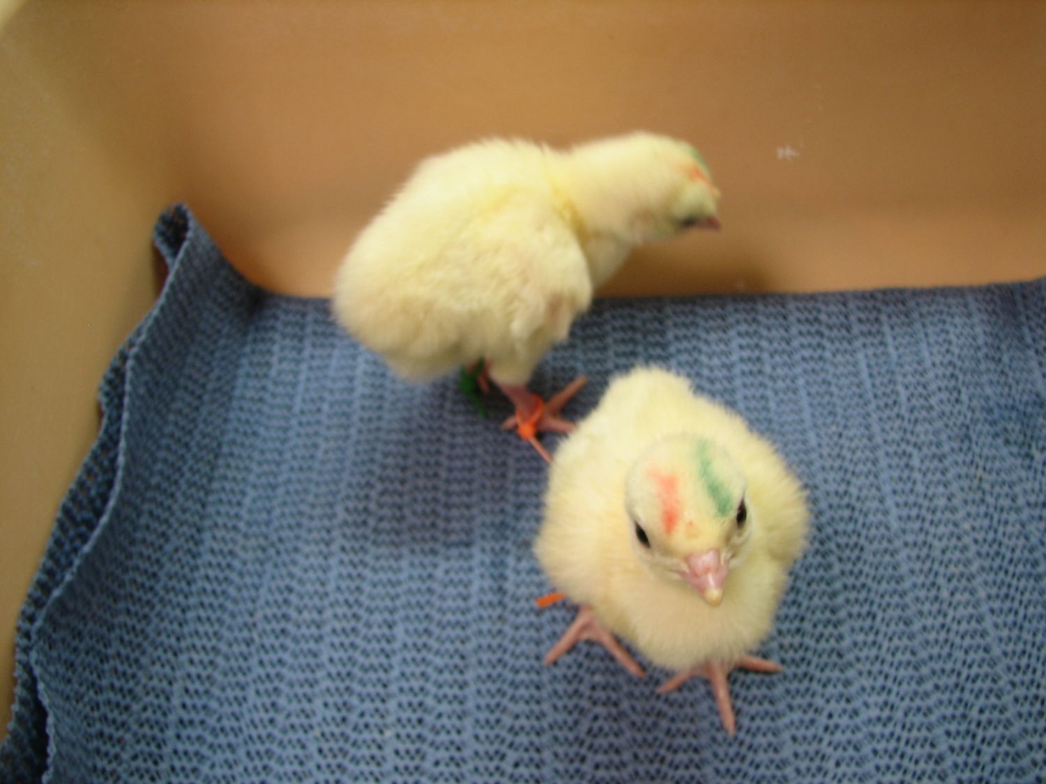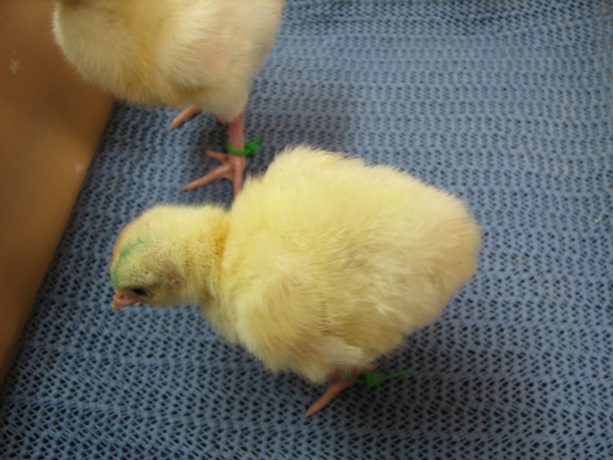 Did these marks fade by 2 weeks? My poults are almost 2 weeks old. I will try to find some good light in the house to get pictures for you. There is no discernible markings on their head except the colored marker that told me which variety they were. I don't think they had any before but could be wrong. Only one did for sure and it's the one that died; that one also had chocolate on feathers coming in.