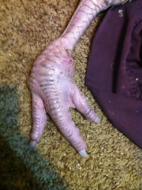 My turkey has been sick since before Thanksgiving. Everyone says he did this on purpose because of the holidays. LOL. Anyhow, I took him to the vet and had tests ran on him. I am finally getting the pneumonia under control but the bumblefoot has me really concerned. They took a sample of the fluid inside and said there was no growth on the petri plates so they were not concerned about it. Yet it hurts him and the swelling is getting worse. I have ordered some of the stuff for Koi Fish (topical antibiotic) but it won't be here until this Saturday. I have taken pictures of his foot, 3 of them. Can anyone please that is familiar with bumblefoot look at it and tell me if I should cut it out or wait for the antibiotic? I have to get him back on his feet so he can start healing. It's been a circular battle since he can't walk right now and I have been doing a lot of physical therapy with him. Don't get me wrong, I don't mind, it's not fair to him. He wants to be out with the flock and be his birdzilla self again.