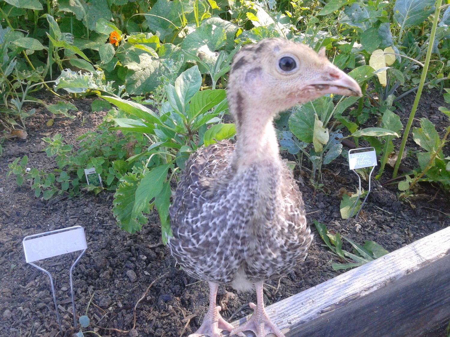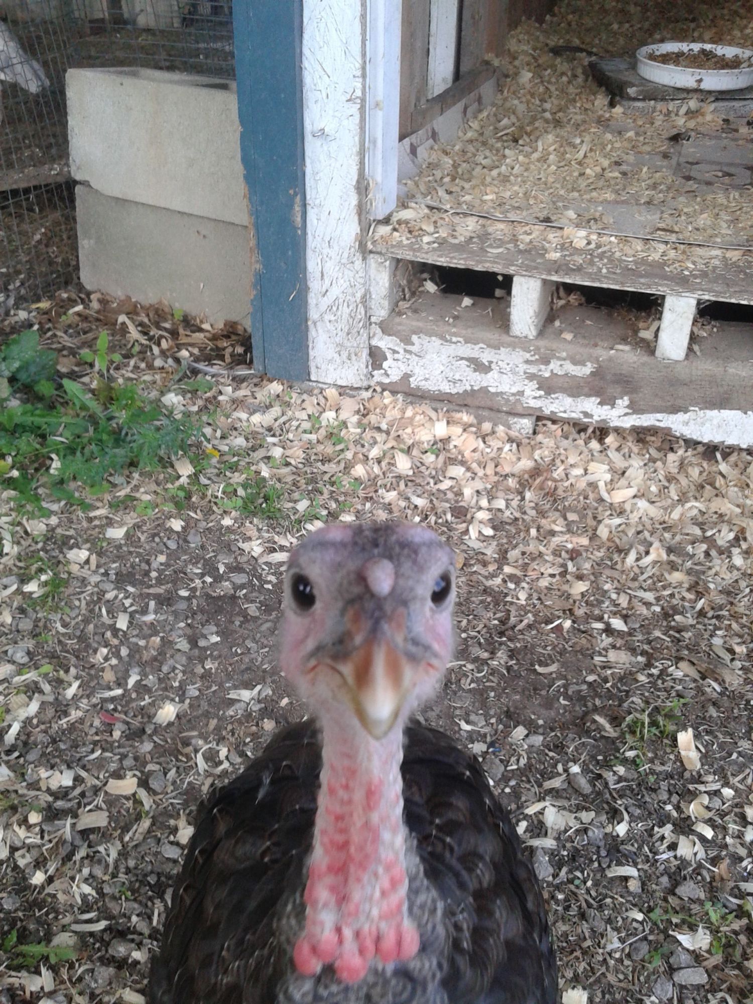 My bronze that we hatched from an egg has turned into a pet. He runs to greet us when we walk outside, and he likes to tug at my shorts. I'm not sure if he's hoping there are treats inside or just trying to get my attention. He also enjoys having his photo taken.