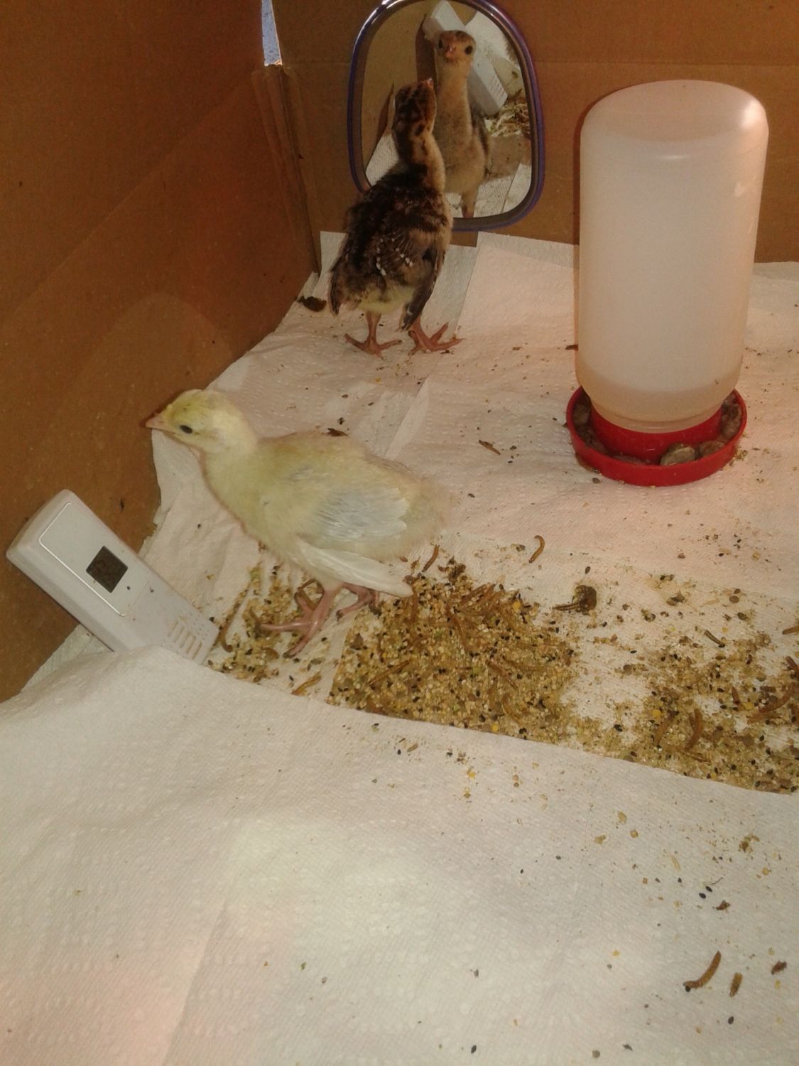 His girlfriend is a little more shy. Either that, or the guineas have made her not like people as much.
