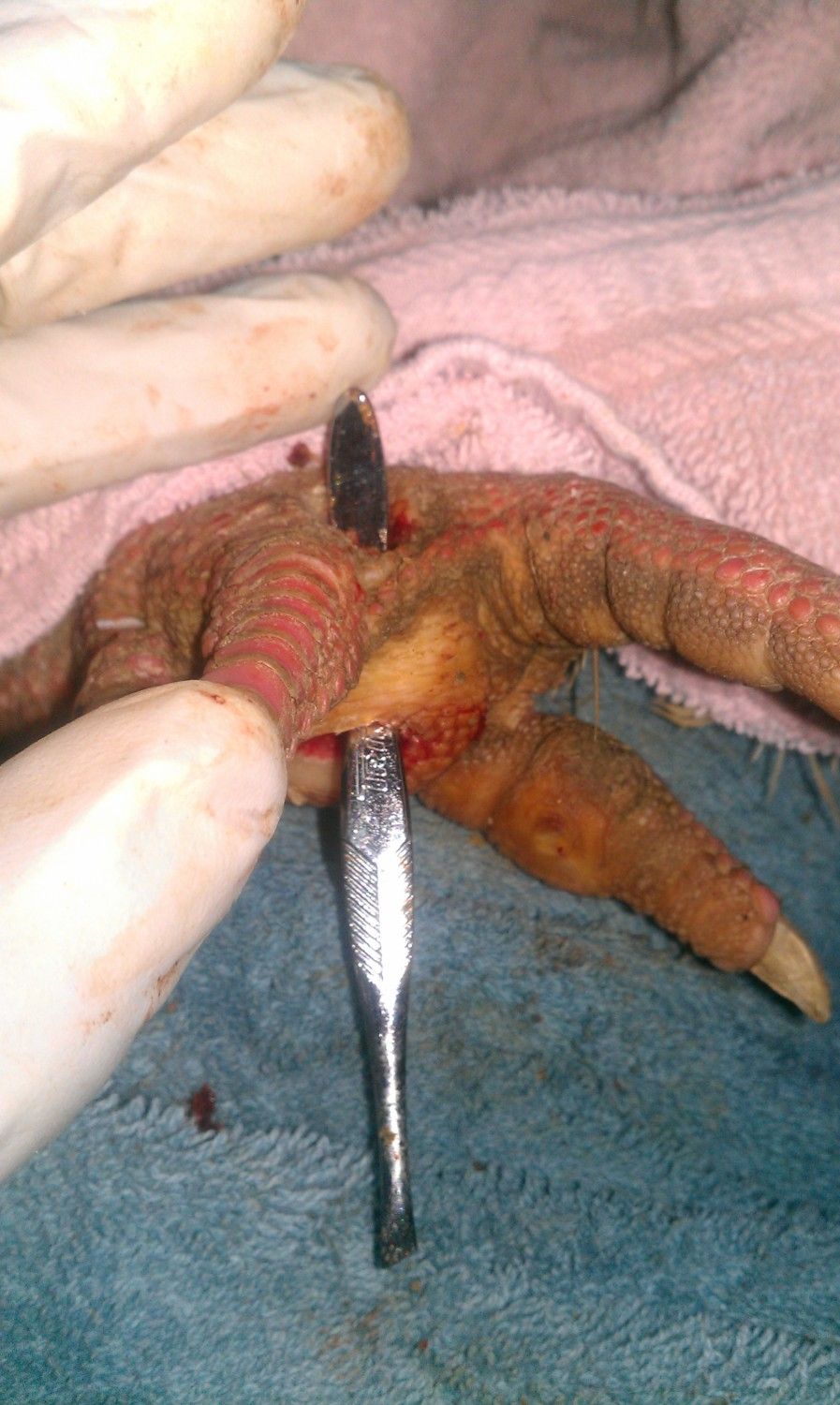 So, I got the foot that has bumble foot. This is what it looked like before I began.