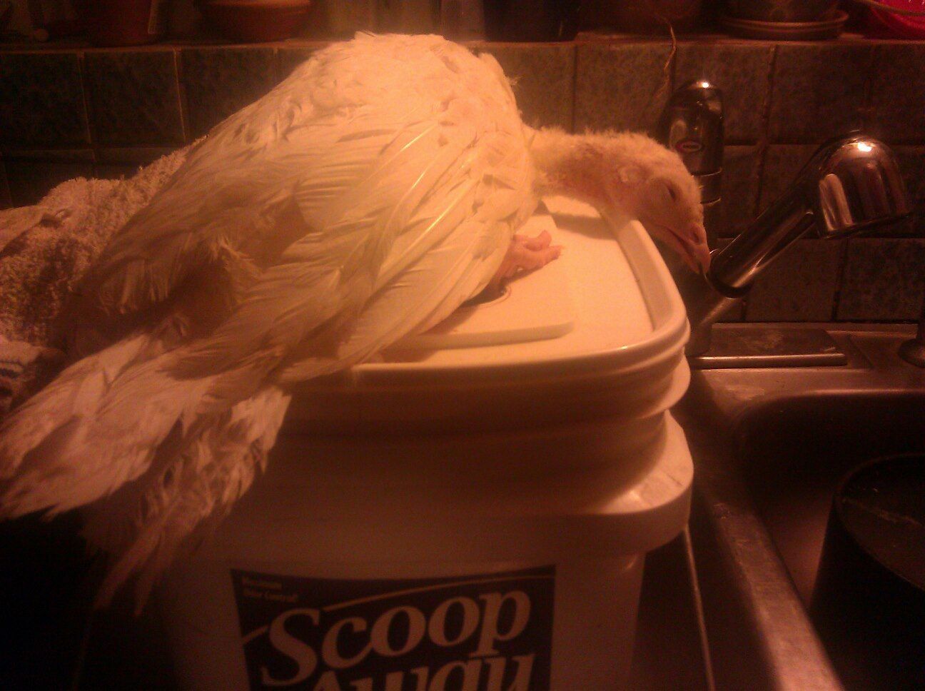 Hope this helps someone else if you ever have to splint a leg for some reason. This is the first bird we've ever had with such a problem so it's all a little trial and error although, I have to admit, my mother is a veterinary parasitologist who taught vet school for 30 years so I've kind of had some exposure to things most people don't get to see. We did have a chicken that we think cracked her leg one time that healed just fine with a lump on it so we knew it was possible to even attempt to heal her. I chose to use the styrofoam splint instead of something harder just to avoid the extra step of having to wrap the leg with cotton batting before putting on the splint before wrapping it. With this turkey, who is named Pogo for a reason, we knew we had to work fast or she would just flop around and hurt herself even more. I wouldn't suggest trying this if the leg is badly broken and certainly not if the skin is broken in any way.