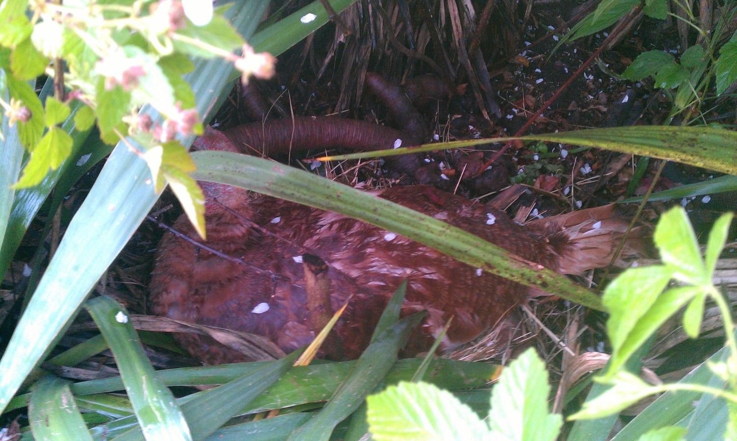 Turkey on Turkey Eggs inside Blueberry Bush in the Front Yard.