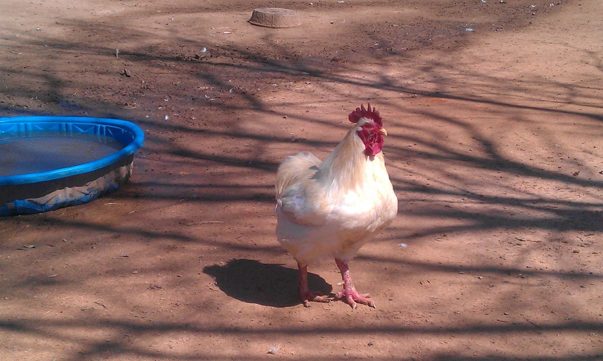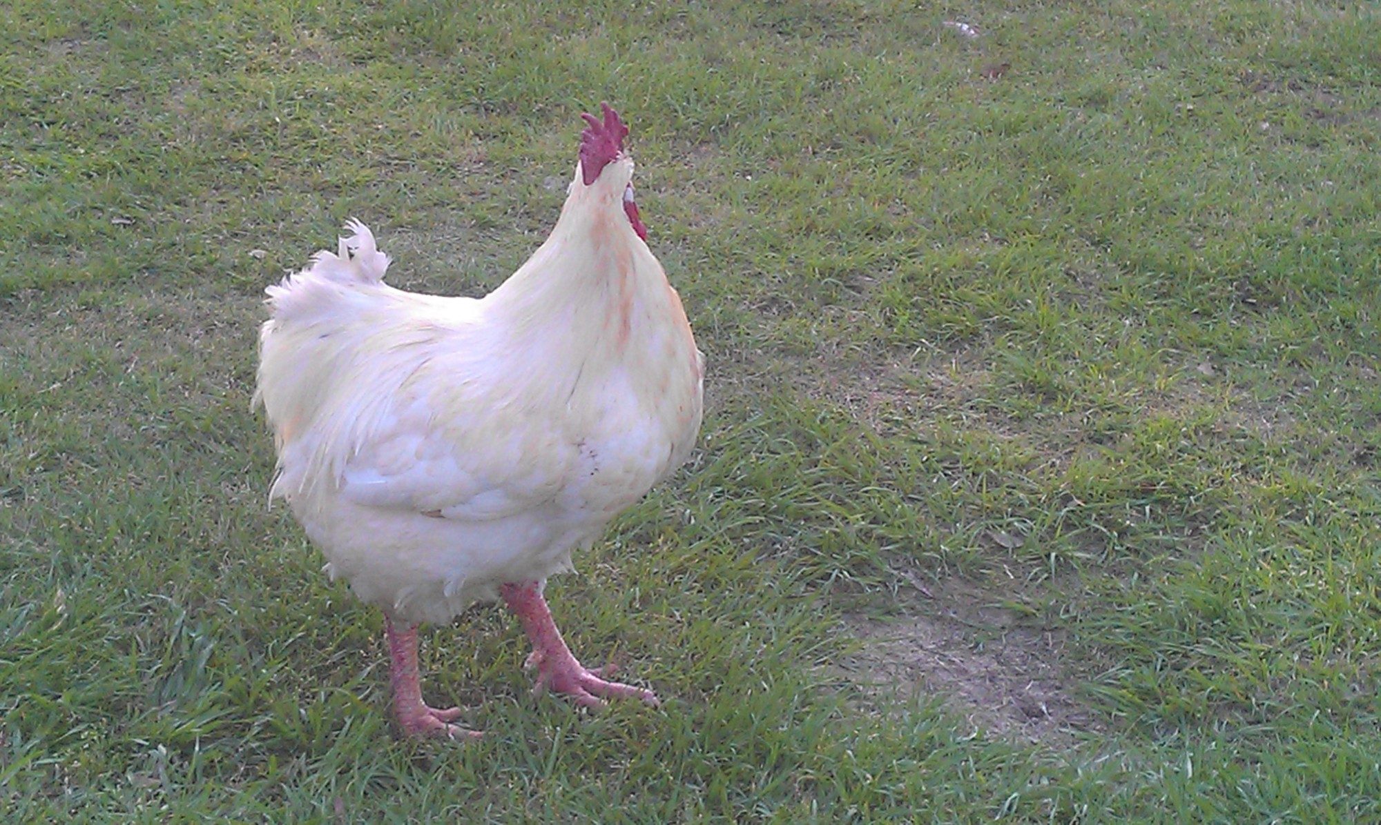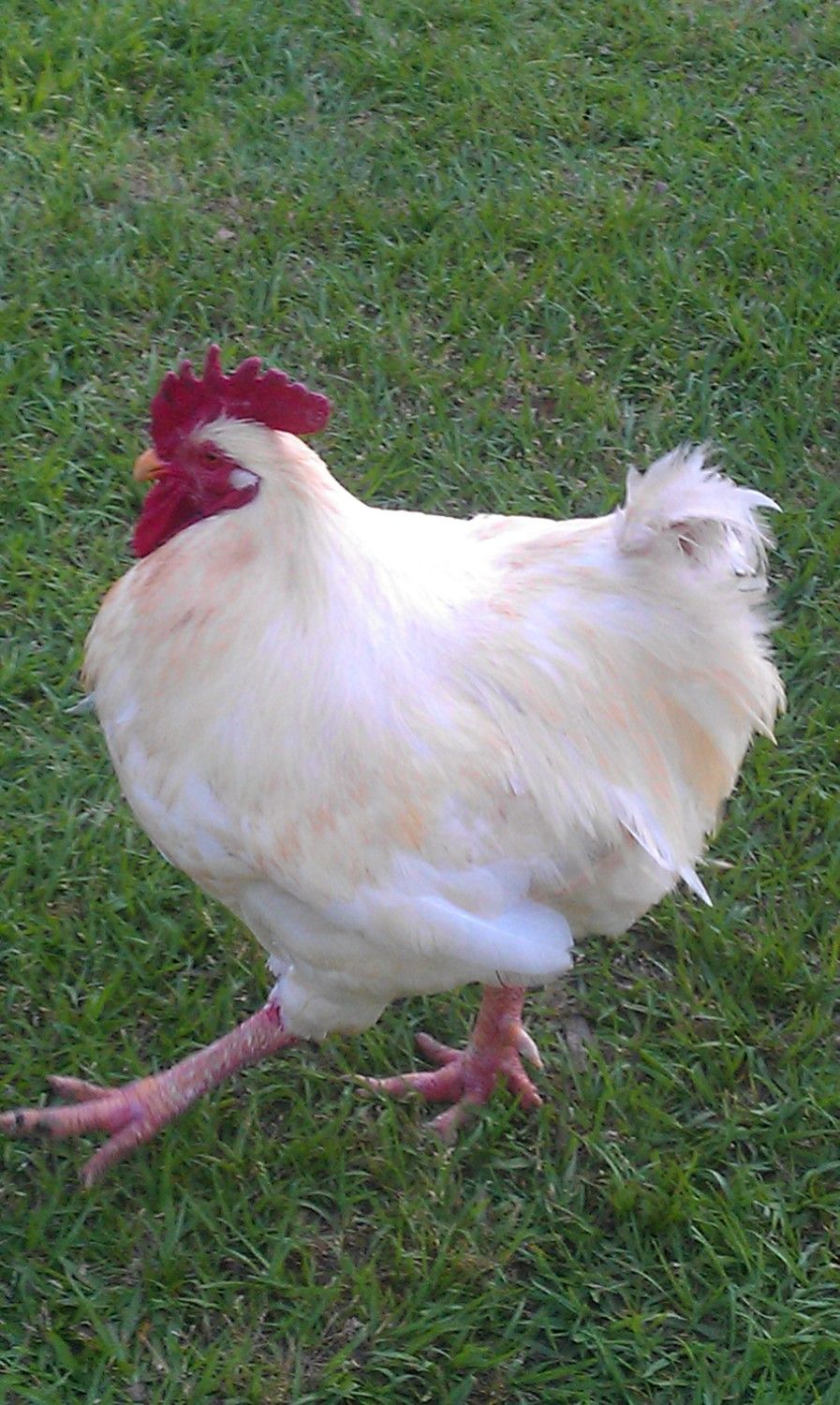 My first year brooding 1 chick (a chicken layed an egg in the turkey nest and I didn't know it) and poults yielded a chick (Rooster) that was the same size of the turkey and he is still the same weight as them now. :gig All of them were on 30% protein. I have not weighed him a long time but when you pick him up, he feels like he weighs about 40 lbs. His feet are HUGE!!!!!!!!! I have had so many offers to buy him because he is soooooooooo big but I would never sell him. He is about 3 years old now. I took this pic of him on yesterday. When he runs, he reminds me of a clumsy 13 year old that is 6'5" and weighs 250 lbs. This is a pic of him last year.