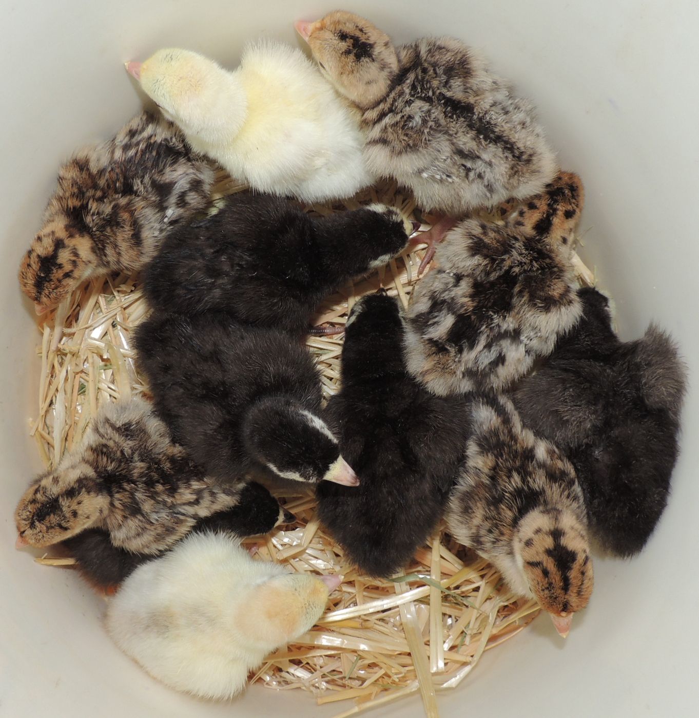 So neat to get those hidden genes coming out. Ohhh, Ahhhh! Pretty![COLOR=4B0082]LOOKIE LOOKIE!!! I got a surprise colored poult!!!Looks all white/yellow, with a light grey strip on it's back... but I can't tell for sure, it's still too wet. No clue where the genes for this poult came from, lol (if anybody can explain, please do... parents are a Narri Jake covering a Narri Hen and 2 Black Mottled Hens... all out of shipped eggs from a Blue Slate Tom X Narri Hen pair from last season).[/COLOR] [COLOR=4B0082]![]()