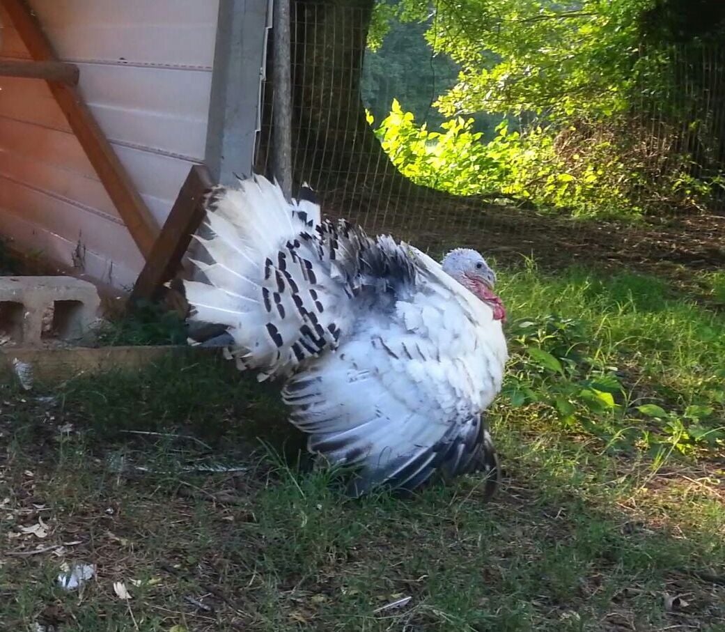 Actually, it does. It's 4 foot, and even with unclipped wings, they do not attempt to fly over it. I don't know if they assume it goes up forever or what, crazy birds. Turkeys just don't seem to get fences. We have a Michelin tire testing track down the road from us that's completely fenced in with chain link, and nearly every time we drive by it we see wild turkeys pacing up and down the outside of the fence trying to get to the field within it, seemingly unaware that they only need to jump up and over to get to it. My birds do however jump up on the gate (it's not infinite like the fence to them I guessI love this picture! My hen would feather all up and puff around after she had mated. I never knew if she was happy or mad. Does the fence keep them in?