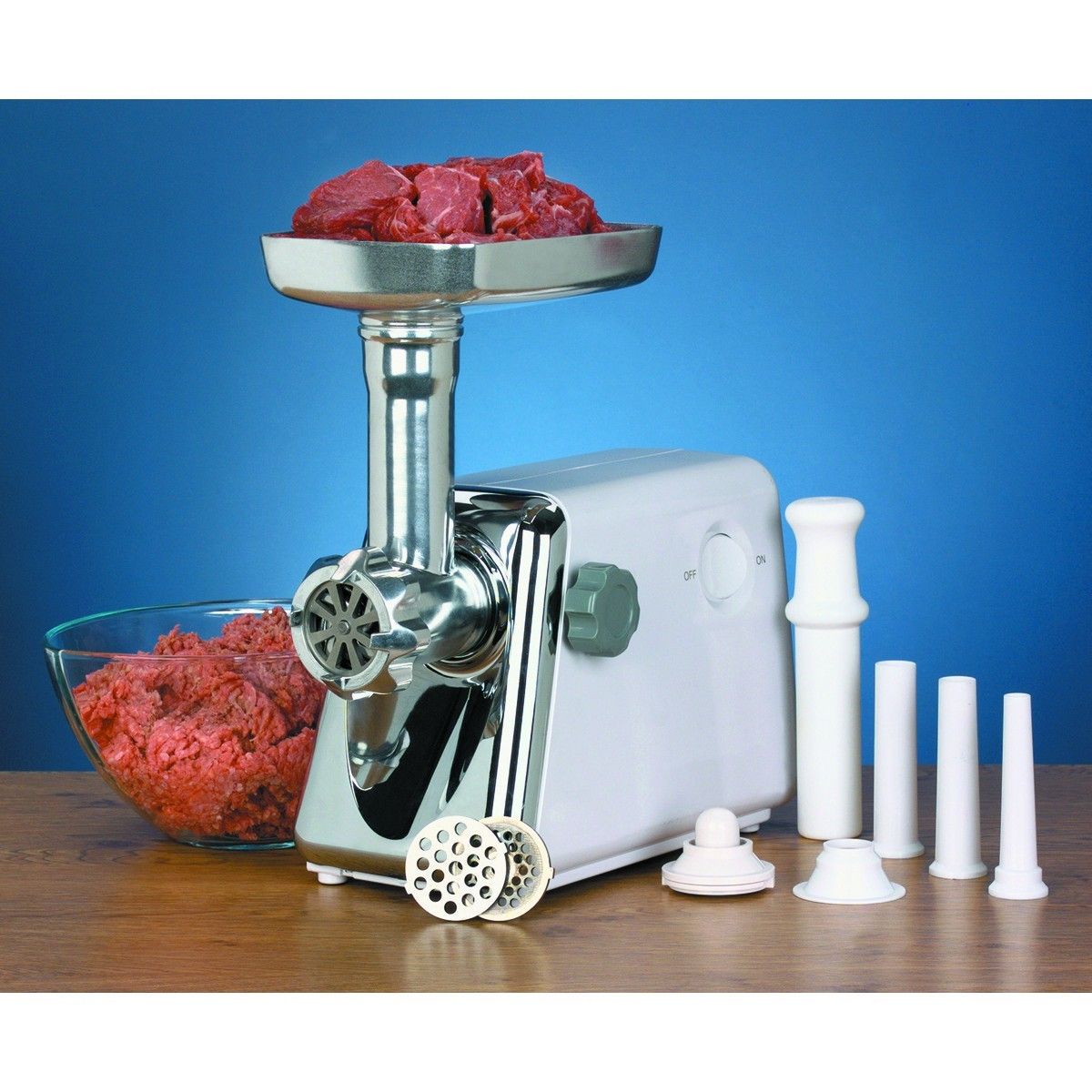 Quickly grind meat for burgers, meatloaf or sausage with this powerful electric meat grinder. A cutlery-grade stainless steel cutting blade and three grinding plates produce coarse, medium and fine grinds of meat. Three stuffing tubes make this electric meat ginder ideal for making sausage.
