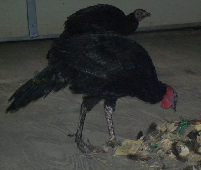 The Black Spanish trio from Aunt Kat. They are in quarantine but I allowed them to run my 12x24 shed while I swept and ran the sweeper in there today.