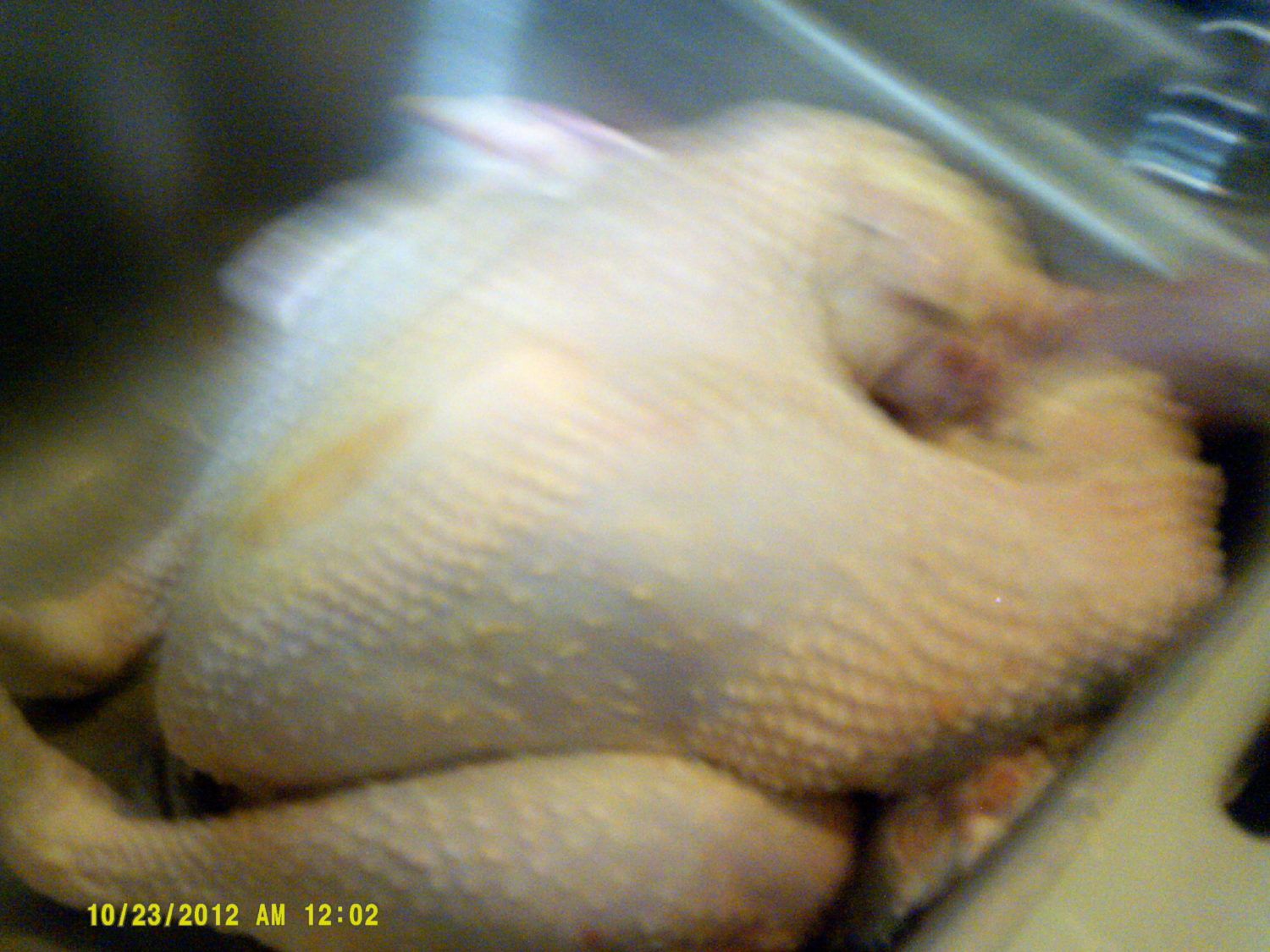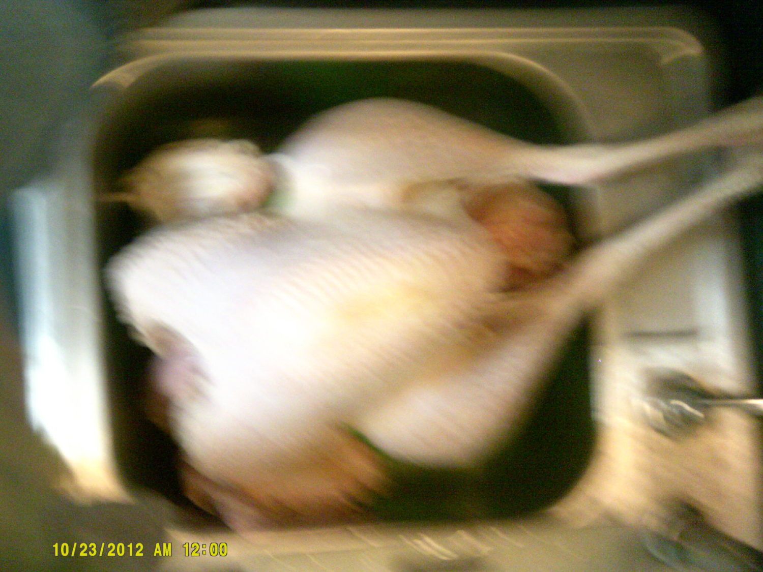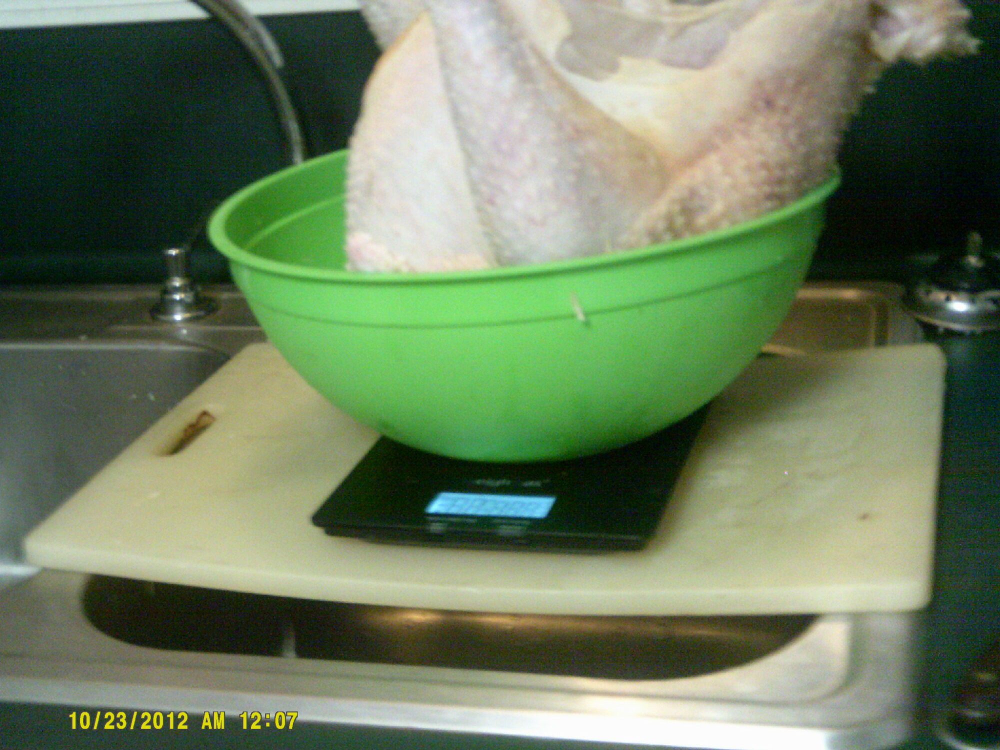 I still have 11 Toms, 11+ rabbits, 6- 16+# meat roosters, a dozen or so ducks(at least), and a few extra roos to process by the end of the year !!! I have been whittling the numbers down, so this is all that is left that won't be wintered over! I accidentally had a younger- than-I-usually process age tom get pushed in front of my golf cart, that I hit and had to process early a couple days ago. It was at last feeding just before dark and I had to just put him out of pain and remove the innards before dark, ice him down and pluck the next day. Will post pictures tomorrow, when I find the cord for the camera to get them on my laptop. He will make a couple days meals for the 2 of us, so he will go into the freezer, but you will see what I say about the weight gain being greatest the second 9 months. This little guy was about 7 months old. We'll probably have him for Christmas day, since the family celebrates together, the weekend before Christmas, with the big guys, if we are not too turkeyed out or have too many leftovers from 3 or 4 35# turkeys, with our big family and friends, depending if my brother got a deer or moose, this year!
