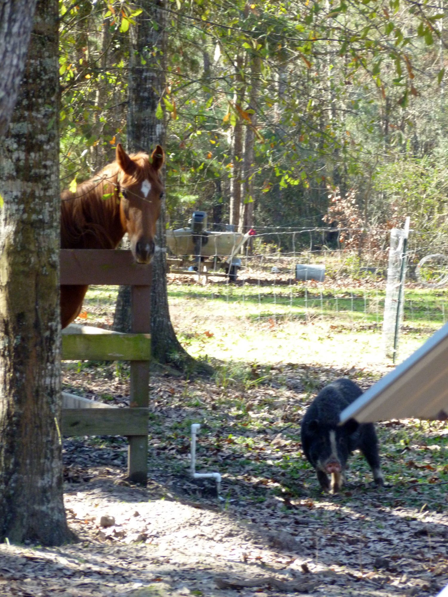I was never able to get good pictures of either of the boar hogs. The huge one that put a hole in the neighbors horse fence is a fierce looking critter. I am not sure I want to get close enough for the zoom to work on the camera....