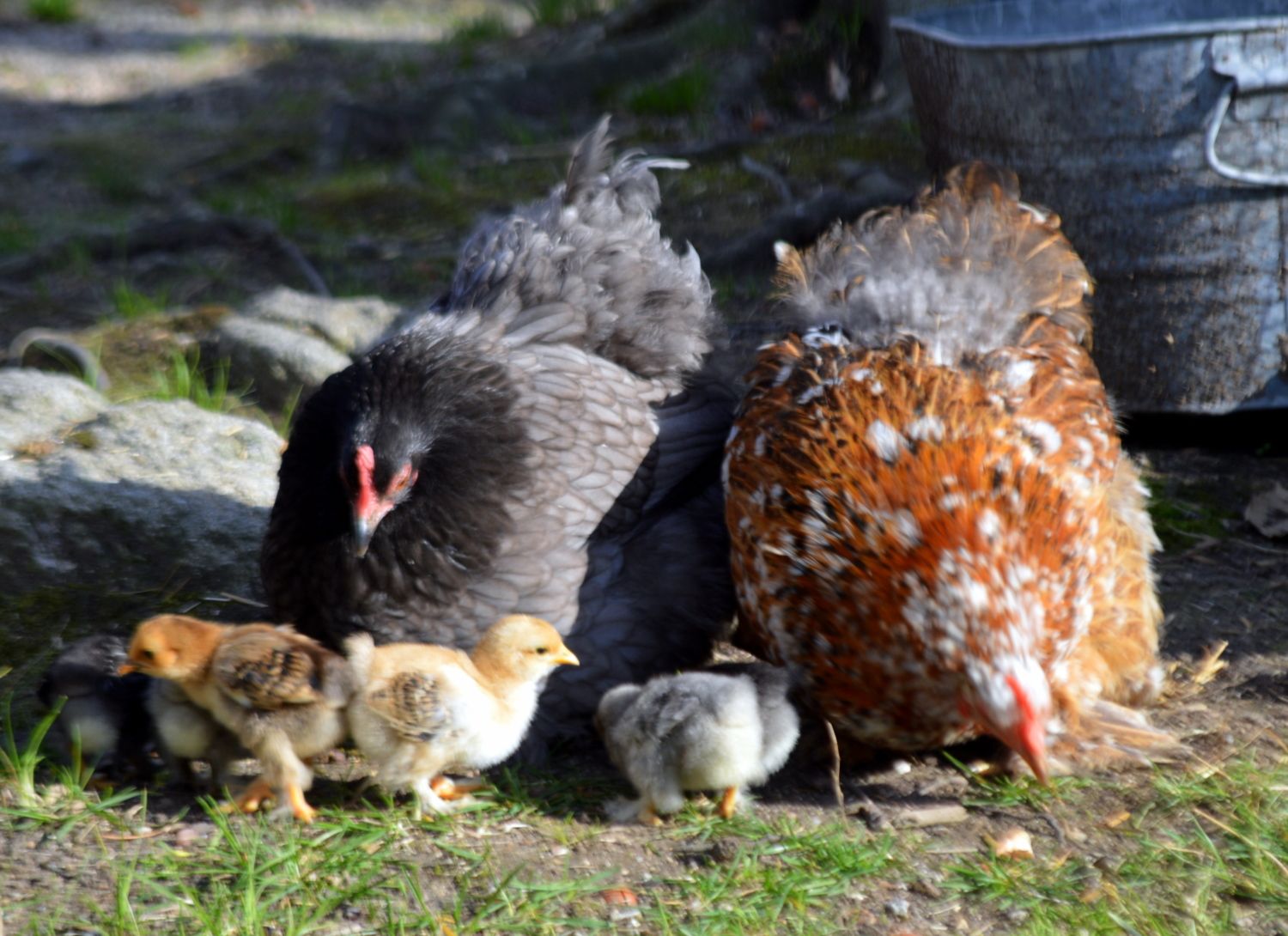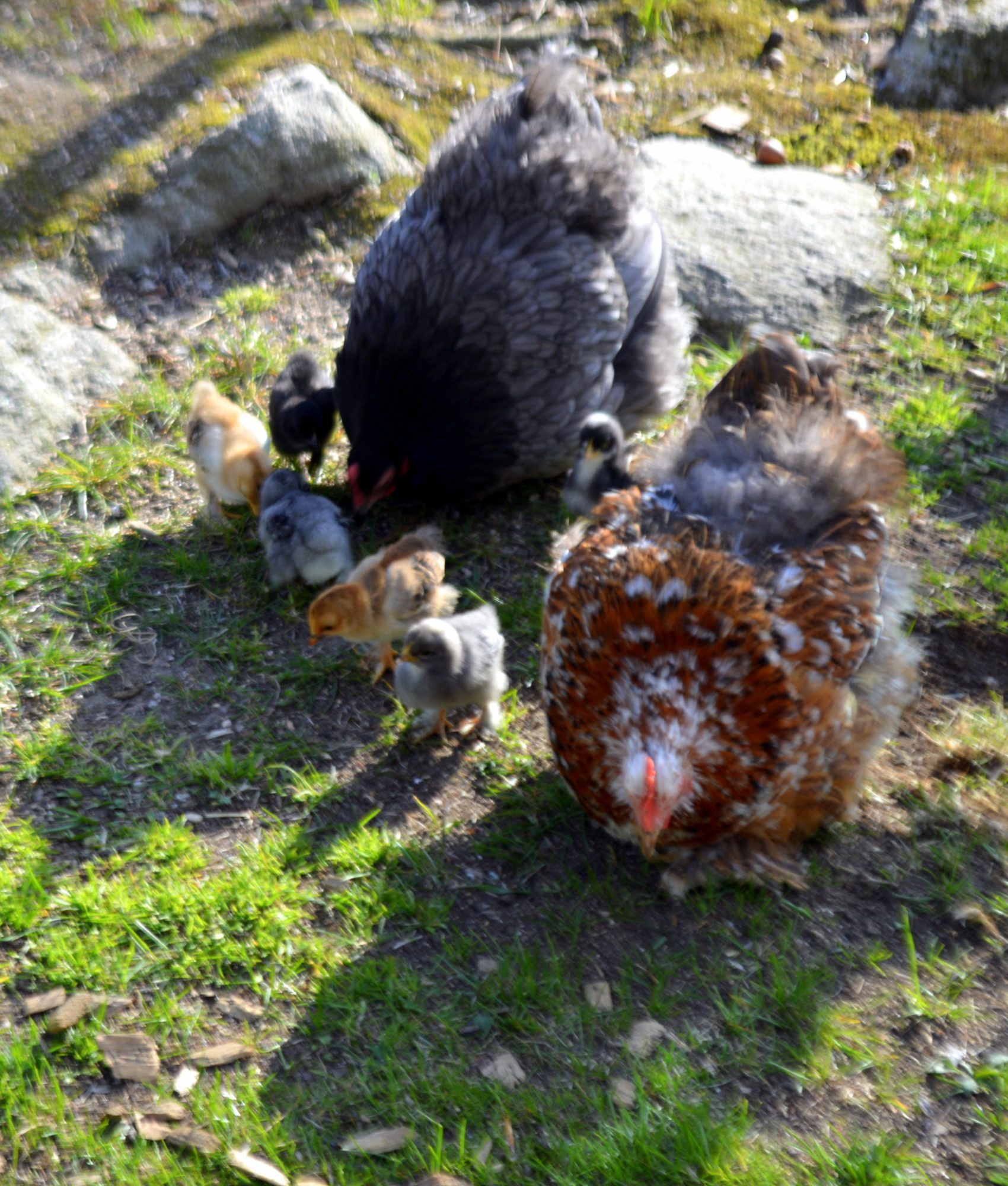 So cute! Mine are doing fine as well! 4 baby chicks, 2 "moms" and. 3rd hen that gets along fine with the babies as well!