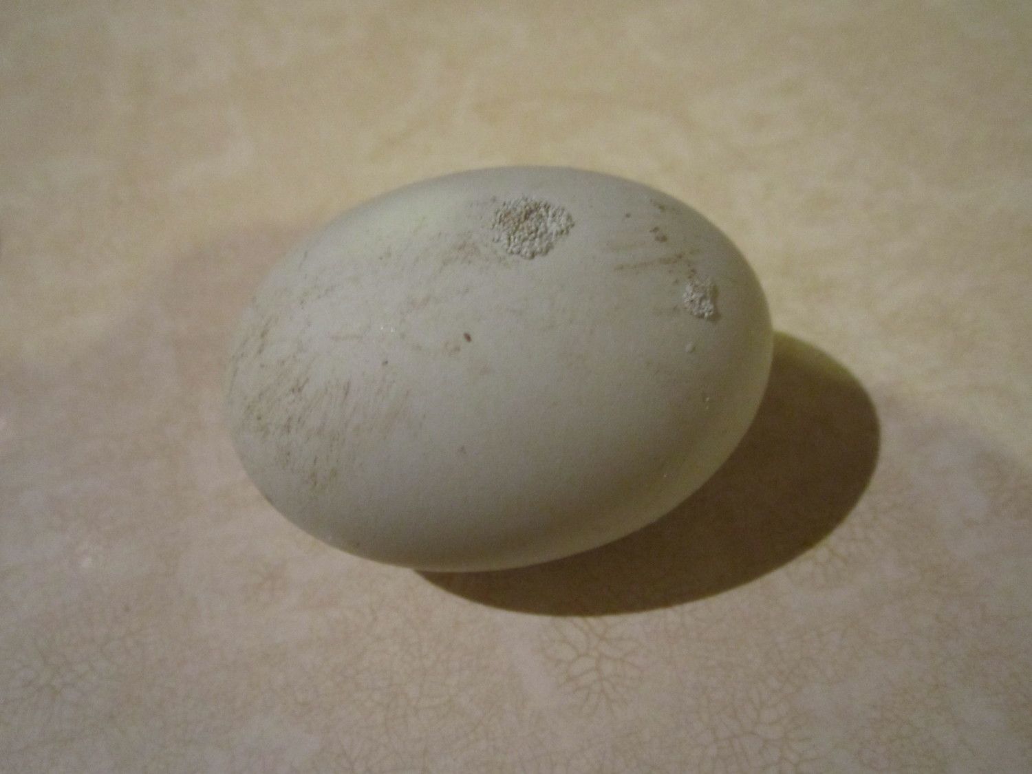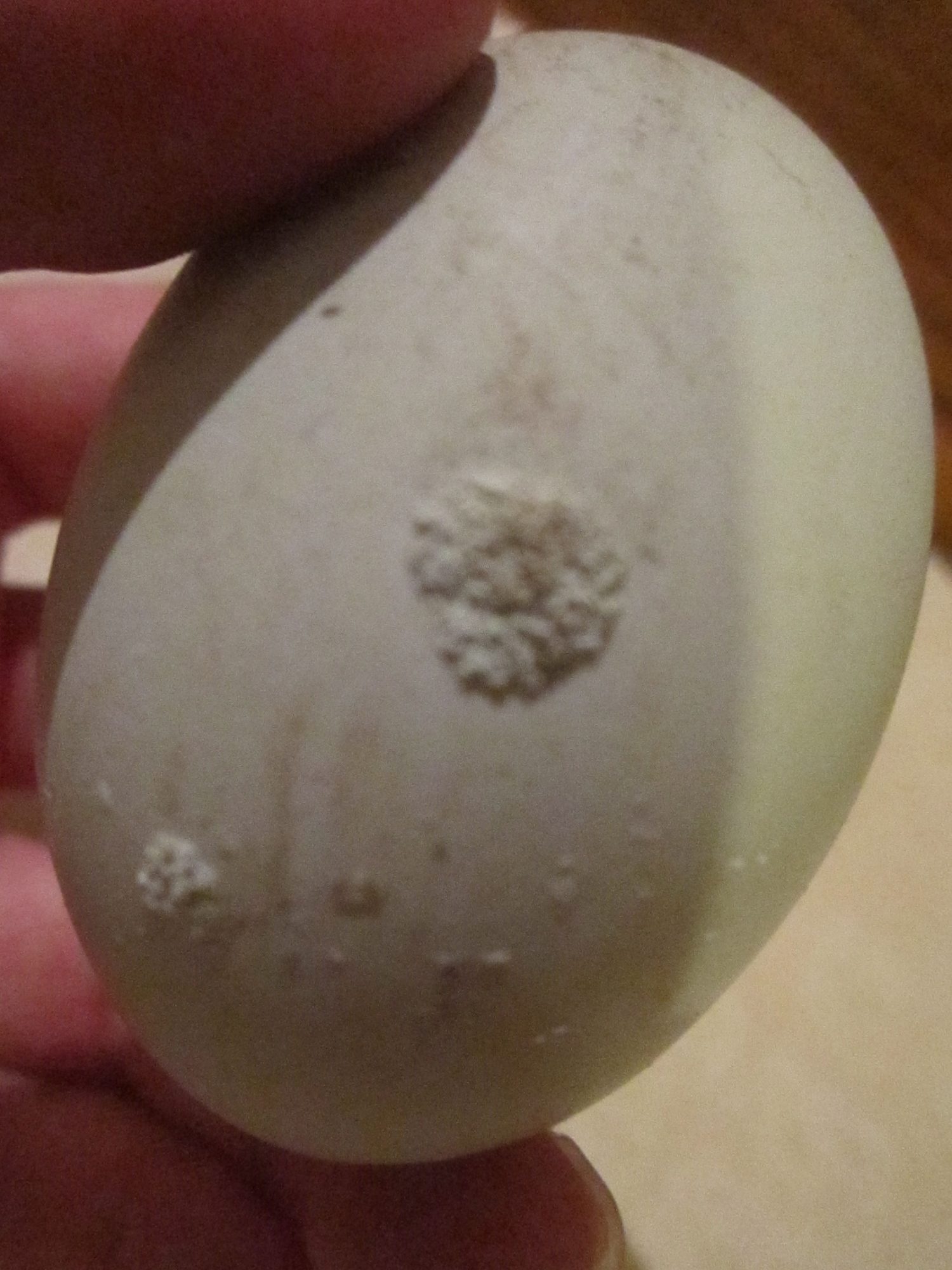 Are these simply calcium deposits? She's been laying eggs like this daily. I'm not sure which hen it is, but I have two EEs that lay blue eggs, one is almost three years old and the other isn't even one.