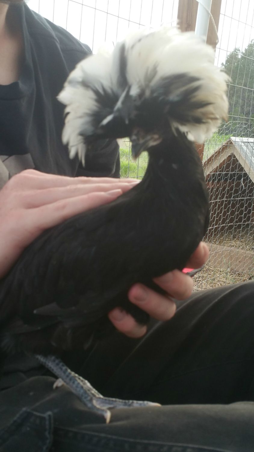 Both were hatched 5/20. Sorry for the poor quality pic on the silkie. I have 7 silkies in total and some are obviously males (at least based on crest shape and tail feathers, along with some obviously combs already) but this one, am not sure on. It does have a little bit of a comb but the crest and tail stump me. The polish (both pics are of the same bird) I go back and forth on. Rounded crest but not very tight shape. No hackles/saddles that I can discern yet.