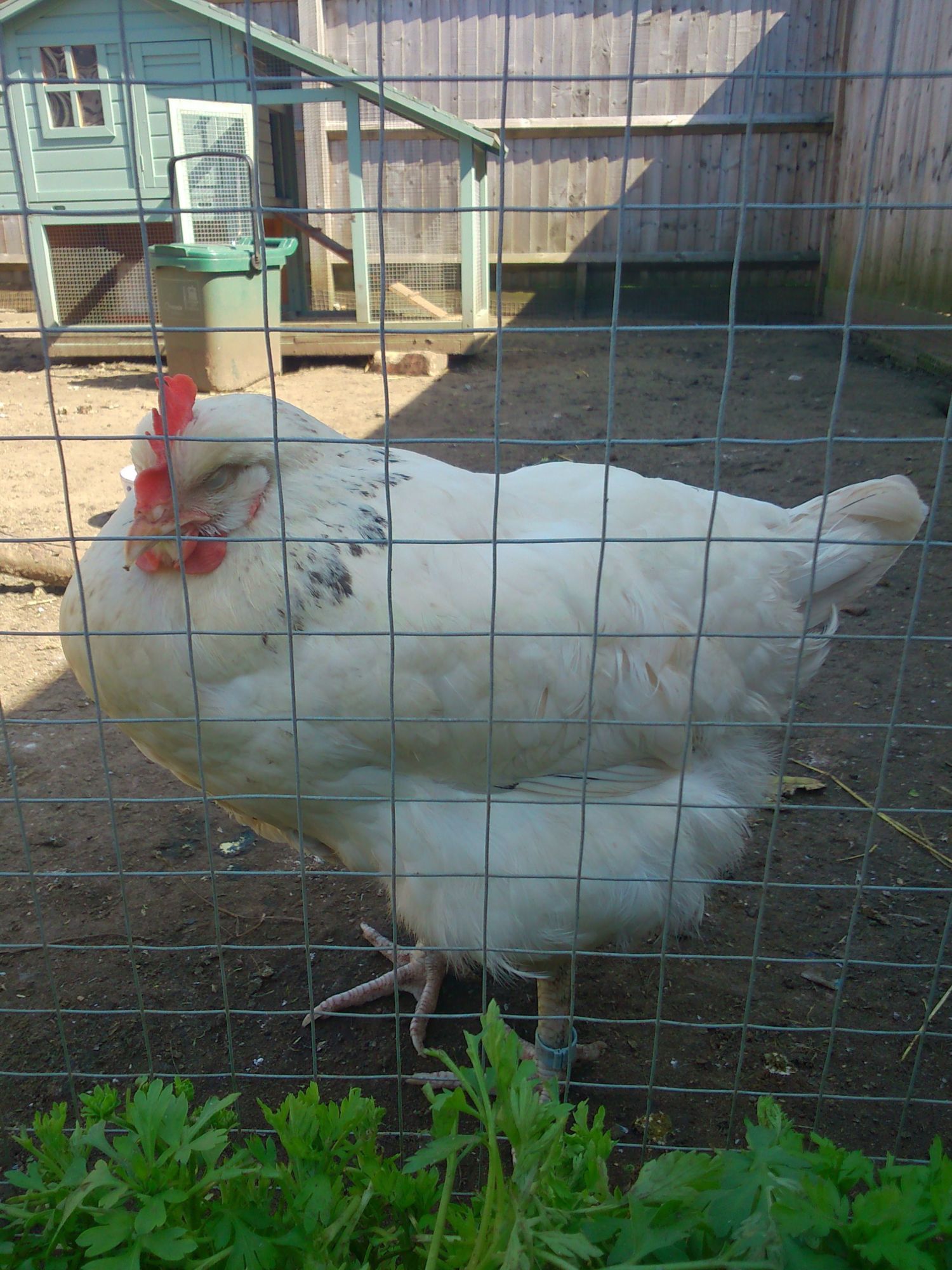 Kiev (the White Sussex) has had a mucky bum for a week or so but in the last couple of days has become increasingly withdrawn from the group and spends most of the day hunched in a corner or lying flat on the floor closing her eyes. She has a very pale comb and I'm really struggling to get her to eat, but she is drinking. Her poos have been very liquidy and I would say are dark green in colour.