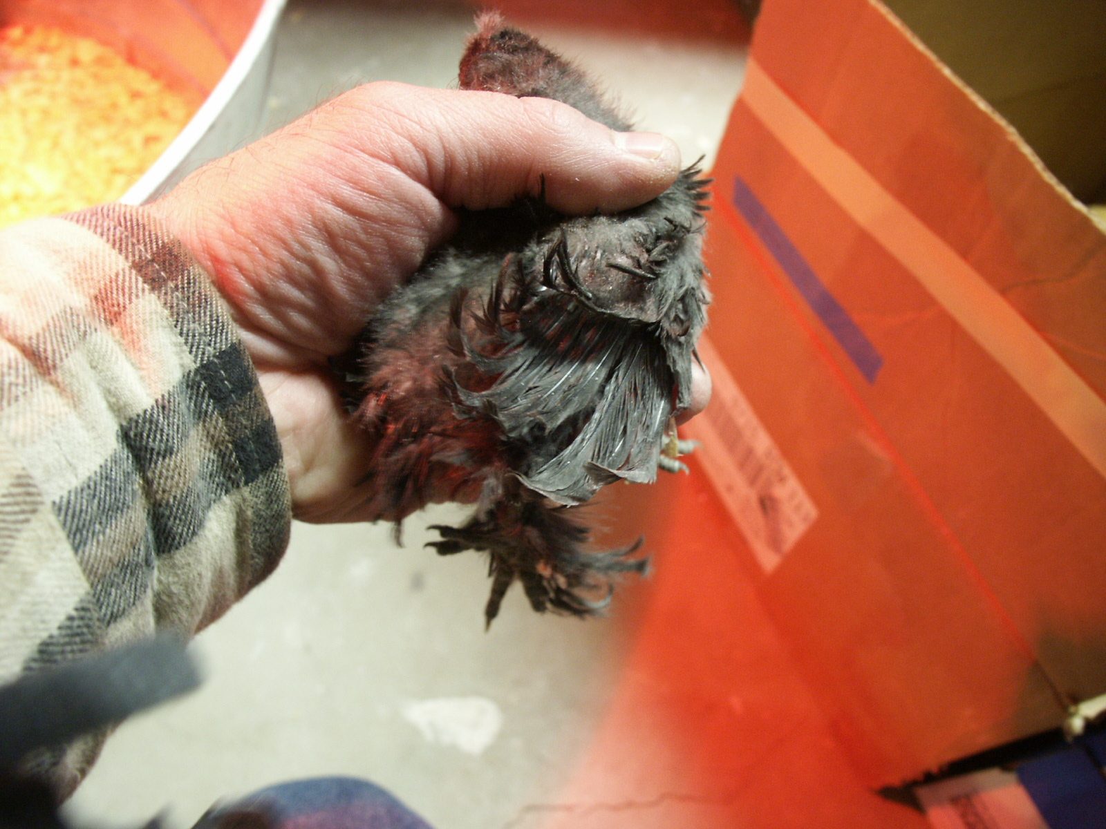 This is the worst of the two black sexlinks. They at least have energy which is encouraging. Dusted them lightly by hand yesterday and put some olive oil on the bald spots. I may be too hopeful but I THINK I see the start of new feathers coming in.
