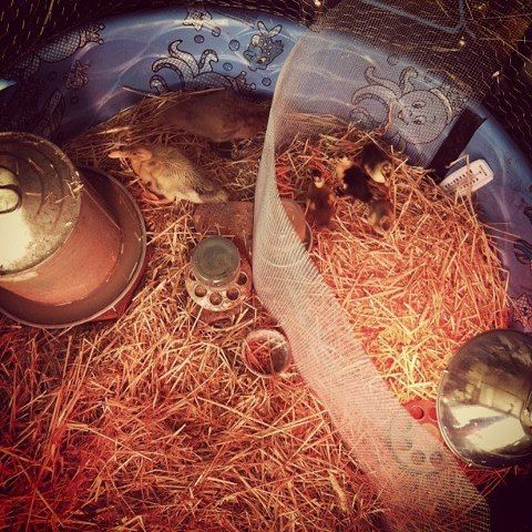 So my question is, what should we do? We dont have room in our garage to get another big baby pool, so they will have to go in the same space together soon, but the girls are just SO much bigger than them! Anything we can do to get them used to each other fast? We are putting them in with the big girls for an hour or so a day while we can be out there watching them, but they still get trampled. And I am worried about the littles drowning in the big water fount we have in there (Its one of those 5 gallon metal fount things, not just open swimming water.