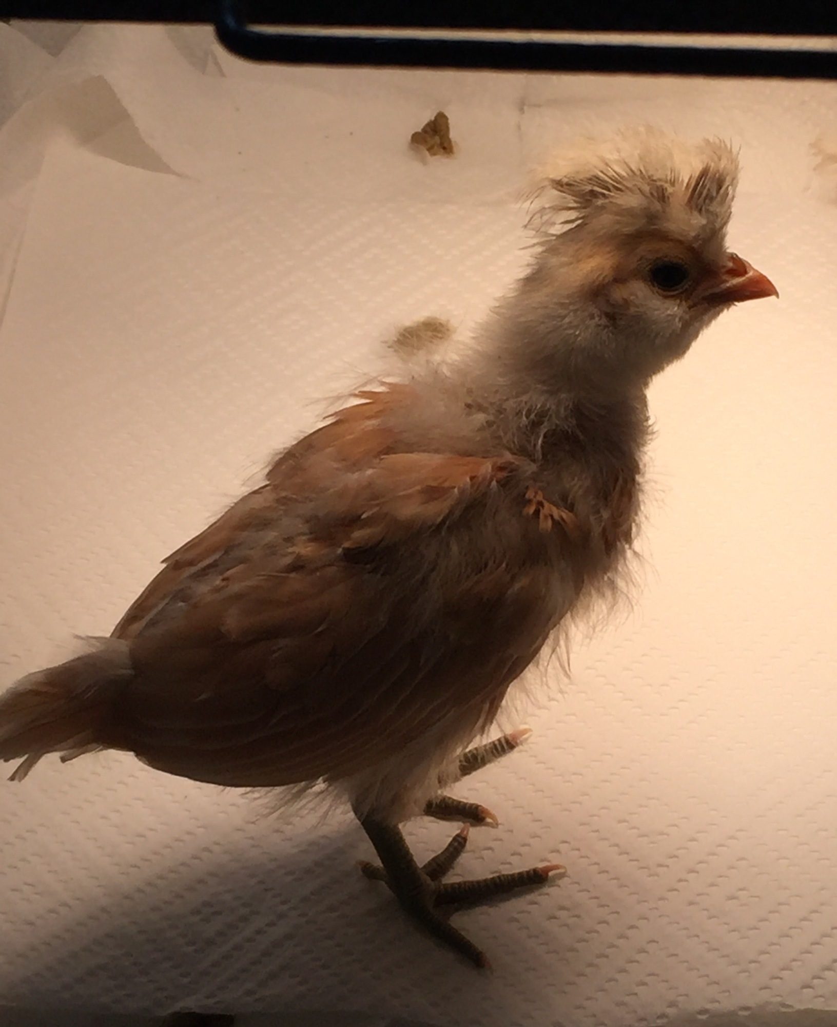 chick one chick two two week old buff polish. Do I have roosters or hens? Thank you in advance for any help