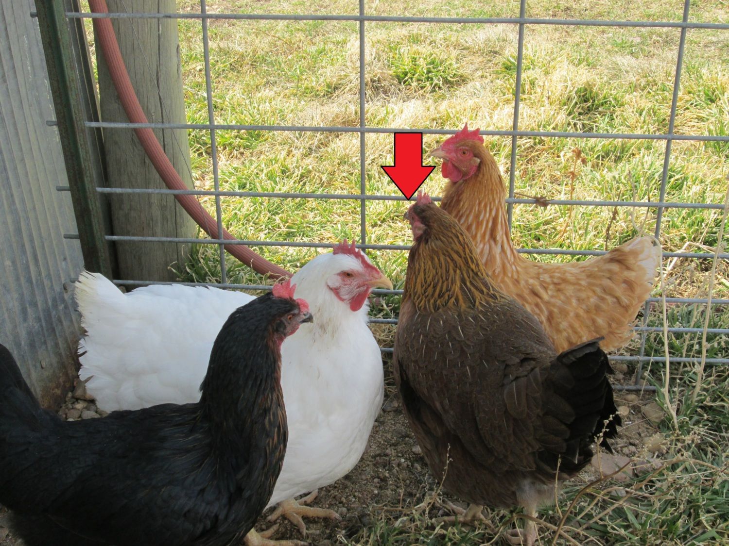 - With the introduction of the rooster (from a different co-worker who has raised chickens for years), the pecking order was thrown off. The hens had never interacted with a rooster prior, so the three-year-old hen was the "leader." The Welsummer and our black one (not 100% sure on her breed) seem to be the lowest ranks.